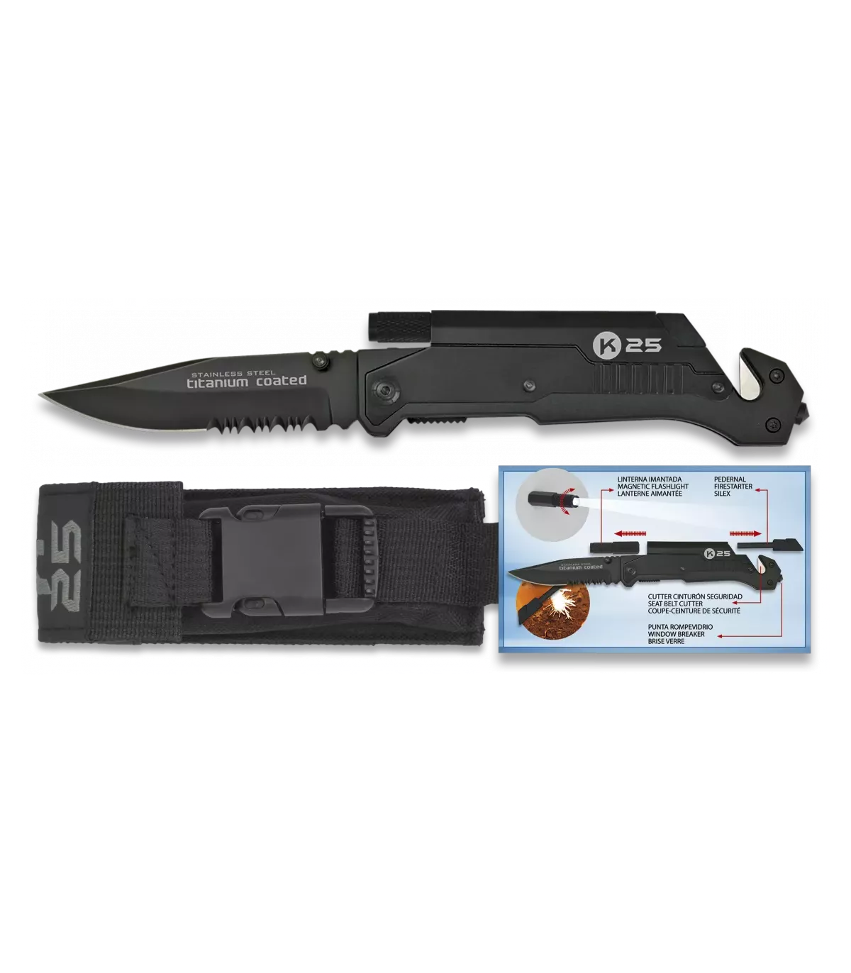 Confie na qualidade e experiência da marca espanhola K25 e adquira este canivete de resgate. Estará preparado para enfrentar qualquer desafio que surgir em seu caminho. Adquira o seu hoje mesmo e experimente a tranquilidade de contar com uma ferramenta confiável em momentos cruciais!
