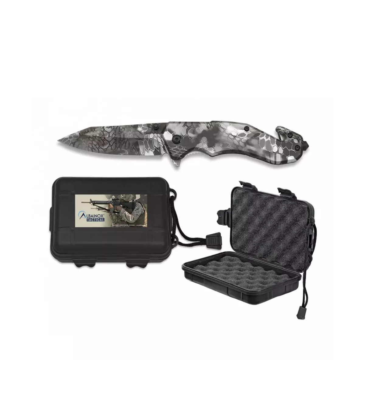 O canivete de resgate Albainox Phyton inclui uma caixa de apresentação em ABS, um clipe, uma ponta quebra-vidros e um corta-cintos. É a ferramenta perfeita para qualquer pessoa que queira estar preparada para qualquer situação, seja no trabalho, em casa ou ao ar livre.