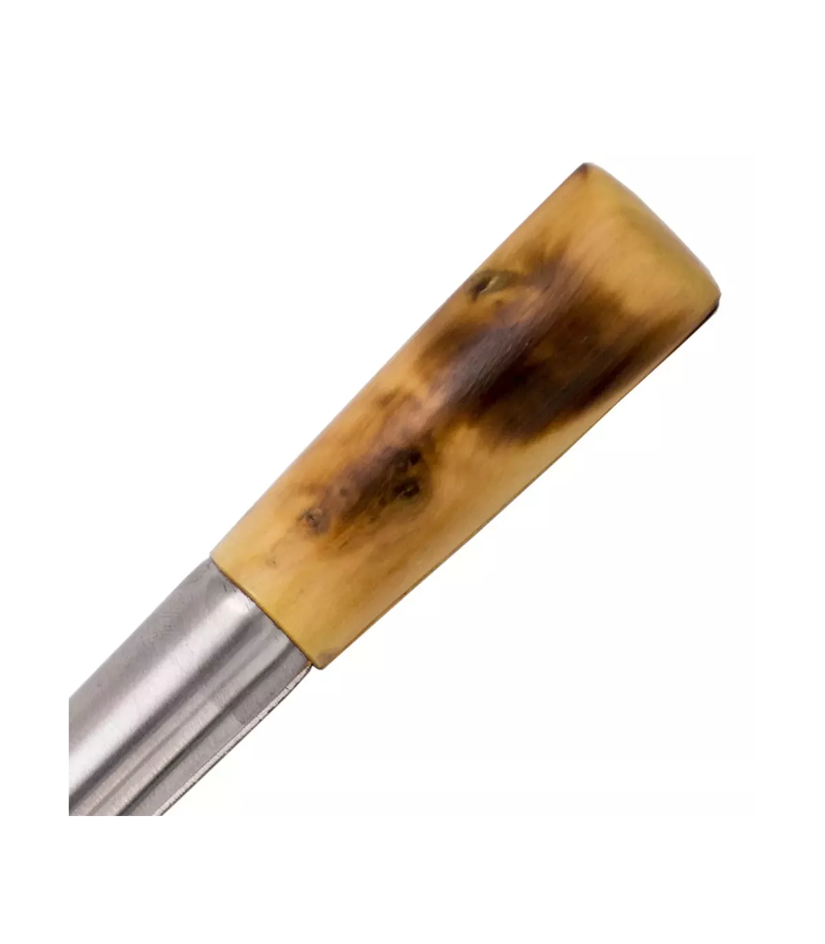 A lâmina mantém-se afiada por muito tempo graças à qualidade do aço utilizado na sua fabricação. A manga da navalha de Taramundi é feita de madeira de buxo, conferindo-lhe uma aparência natural e resistente. O design ergonômico da empunhadura permite uma pega firme, mesmo durante longos períodos de uso.