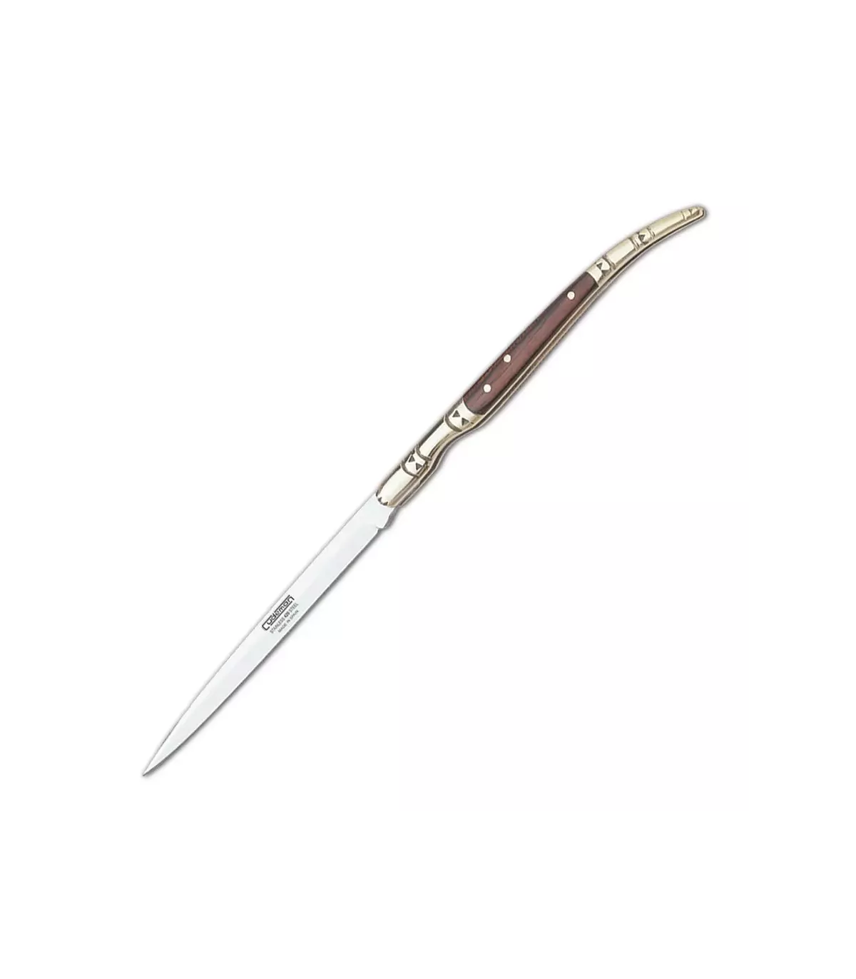 Com uma lâmina de 10 cm, este estilete destaca-se pelo seu design clássico e precisão excepcional. Fabricado com artesanato de alta qualidade pela casa Cudeman em Albacete, garante excelência em cada corte. O cabo de estamina proporciona uma pega segura e confortável, enquanto o latão estampado adiciona um toque de distinção.