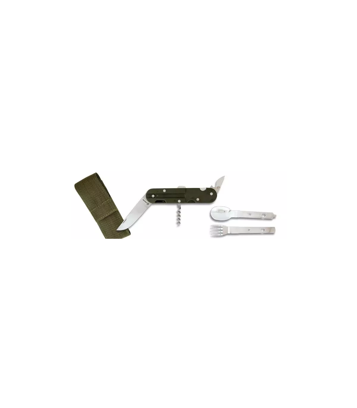 Prepare-se para suas aventuras de camping com o completo conjunto de camping de 3 peças da renomada marca espanhola Martínez Albainox. Este conjunto inclui uma canivete multiuso com uma lâmina de aço inoxidável de 9 cm, um garfo e uma colher, tudo o que você precisa para suas refeições ao ar livre.