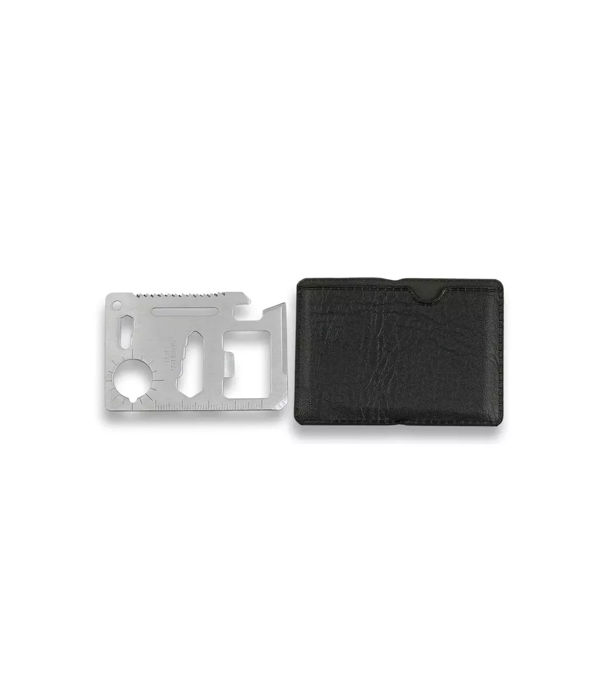 Com este cartão de aço, você terá uma serra sempre à mão para cortar materiais leves quando necessário. Além disso, possui uma chave de fenda que ajudará a apertar ou afrouxar parafusos em qualquer situação. O cartão também inclui um abridor de garrafas para momentos de relaxamento e uma régua para medir com precisão.