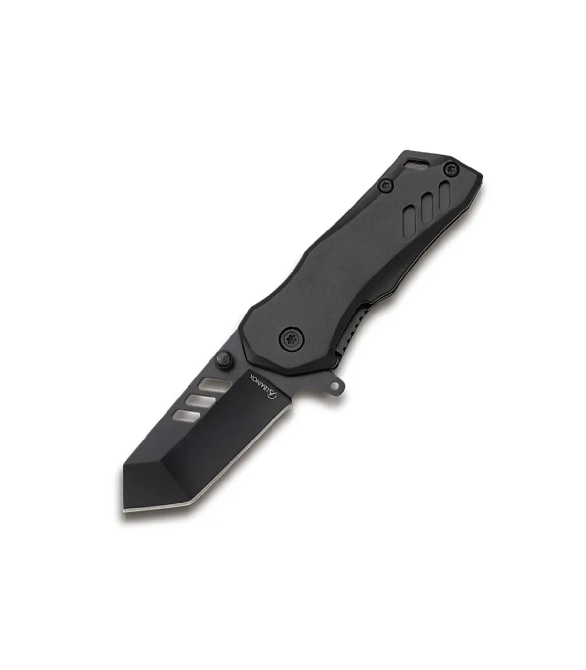 A lâmina do canivete tático K-25 é feita de aço inoxidável 7Cr13MoV, um material que é muito resistente e durável. A lâmina também possui um acabamento acetinado que a faz parecer elegante e sofisticada. O cabo do canivete é feito de alumínio preto, um material leve e durável. O cabo também possui um design ergonômico que proporciona uma pegada confortável e segura.
