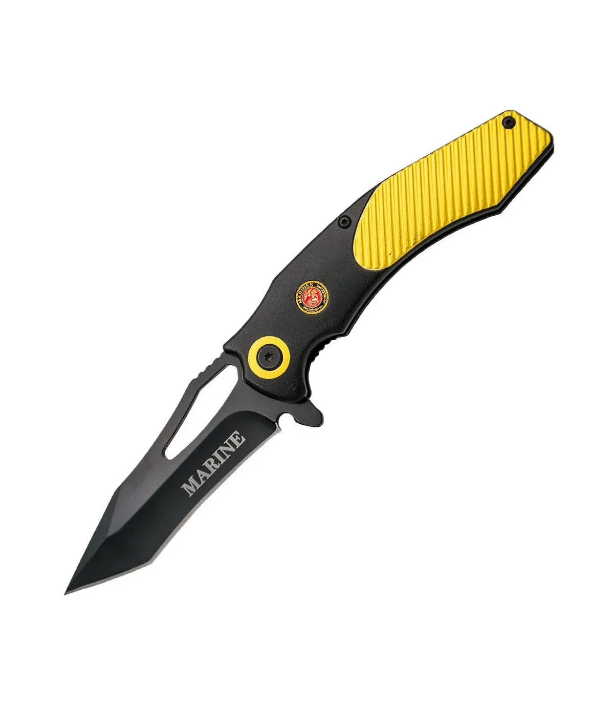 A canivete tático Third modelo K0819 Marine é uma ferramenta de alta qualidade, projetada para realizar uma variedade de tarefas. A lâmina de aço 420 é resistente e durável, podendo ser usada para cortar, esculpir, descascar e outras tarefas. O cabo de alumínio é ergonômico e confortável de usar, mesmo em condições úmidas. O escudo dos Marines no cabo confere um toque de estilo.