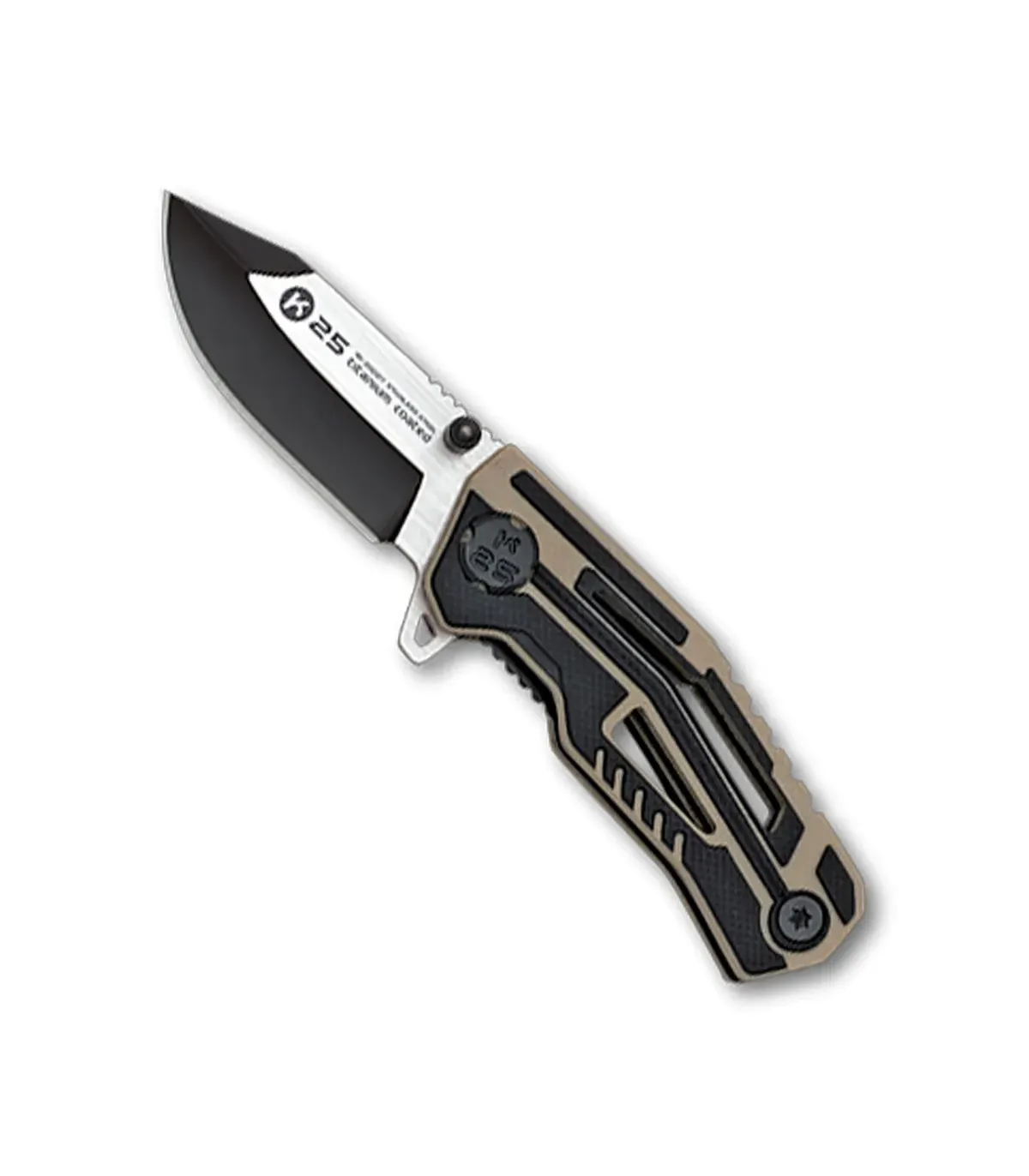 Canivete tático K25 com empunhadura G10 koyote efeito fibra de carbono