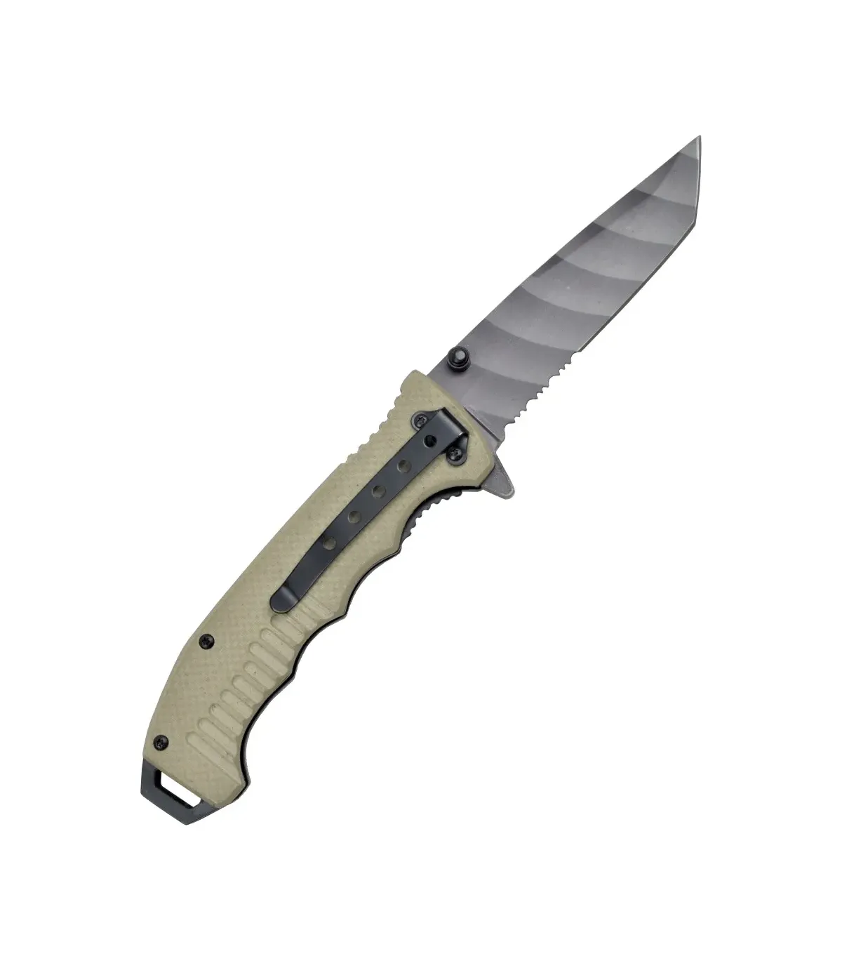 O cabo de laminado de fibra de vidro G10 oferece uma combinação perfeita de leveza e resistência. Com seu design ergonômico e texturizado, proporciona uma pegada confortável e segura mesmo nas situações mais exigentes. O canivete está equipado com um clipe para cinto, facilitando seu transporte e acesso rápido quando precisar. Além disso, conta com um mecanismo de trava liner para garantir uma fixação segura da lâmina durante o uso. Também inclui um pino de polegar para uma abertura fácil e rápida com uma única mão.