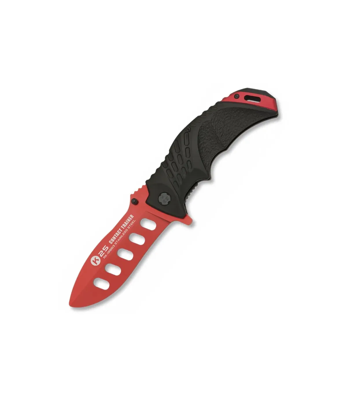 Prepare-se para descobrir a faca de treinamento K25 em um vibrante tom de vermelho, projetada na Espanha para lhe oferecer qualidade e versatilidade em um único pacote!
