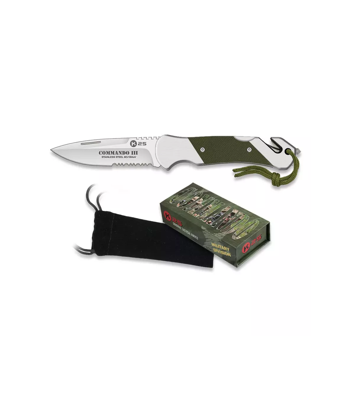 Características que destacam a Canivete Tático K25 Commando Segurança: