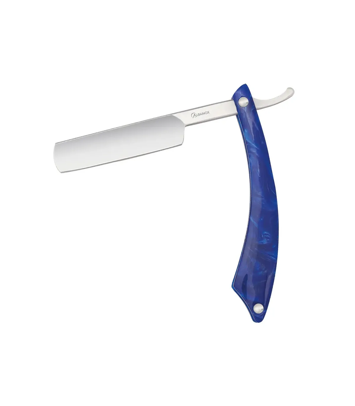 O cabo de imitação de madrepérola em tom azul acrescenta um toque de distinção e elegância a esta navalha barbera. Não é apenas visualmente atraente, mas também oferece uma pegada firme e confortável, permitindo manusear a navalha com precisão e segurança. A combinação de aço inoxidável e imitação de madrepérola garante a durabilidade e resistência necessárias para anos de uso confiável.