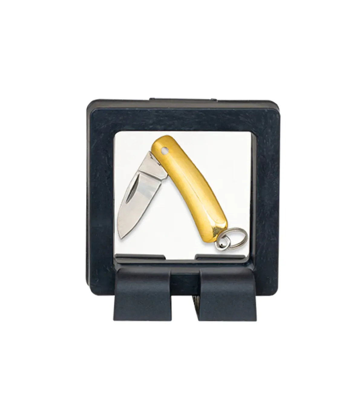 O cabo de latão acrescenta um toque de distinção e durabilidade. Embora compacto, o cabo de latão proporciona uma boa pegada e uma sensação de robustez, fazendo com que o canivete miniatura seja fácil de manusear apesar de seu tamanho. O sistema de bloqueio por pistão garante um funcionamento seguro, evitando o fechamento acidental da lâmina e garantindo um uso confiável em todos os momentos.