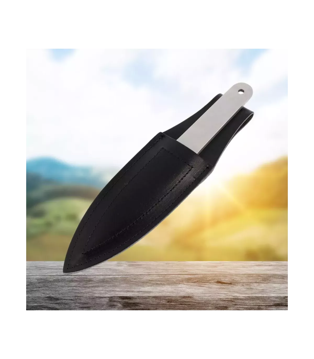 A inclusão de uma bainha de couro com a faca de arremesso da marca Muela garante que ela esteja protegida e segura quando não estiver em uso. Com um peso de aproximadamente 200 gramas, esta faca de arremesso é suficientemente pesada para um lançamento estável e leve o suficiente para permitir um lançamento rápido e eficaz.