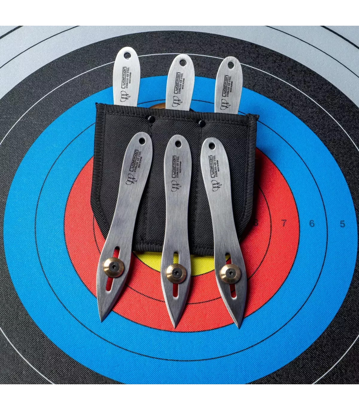 Cada faca possui um contrapeso duplo para equilibrar o arremesso, permitindo personalizar a experiência de acordo com suas preferências. Além disso, seu acabamento satinado confere uma aparência elegante e moderna. E não se preocupe com a proteção e transporte, pois vêm com uma capa tripla de cordura incluída para levá-las a qualquer lugar.