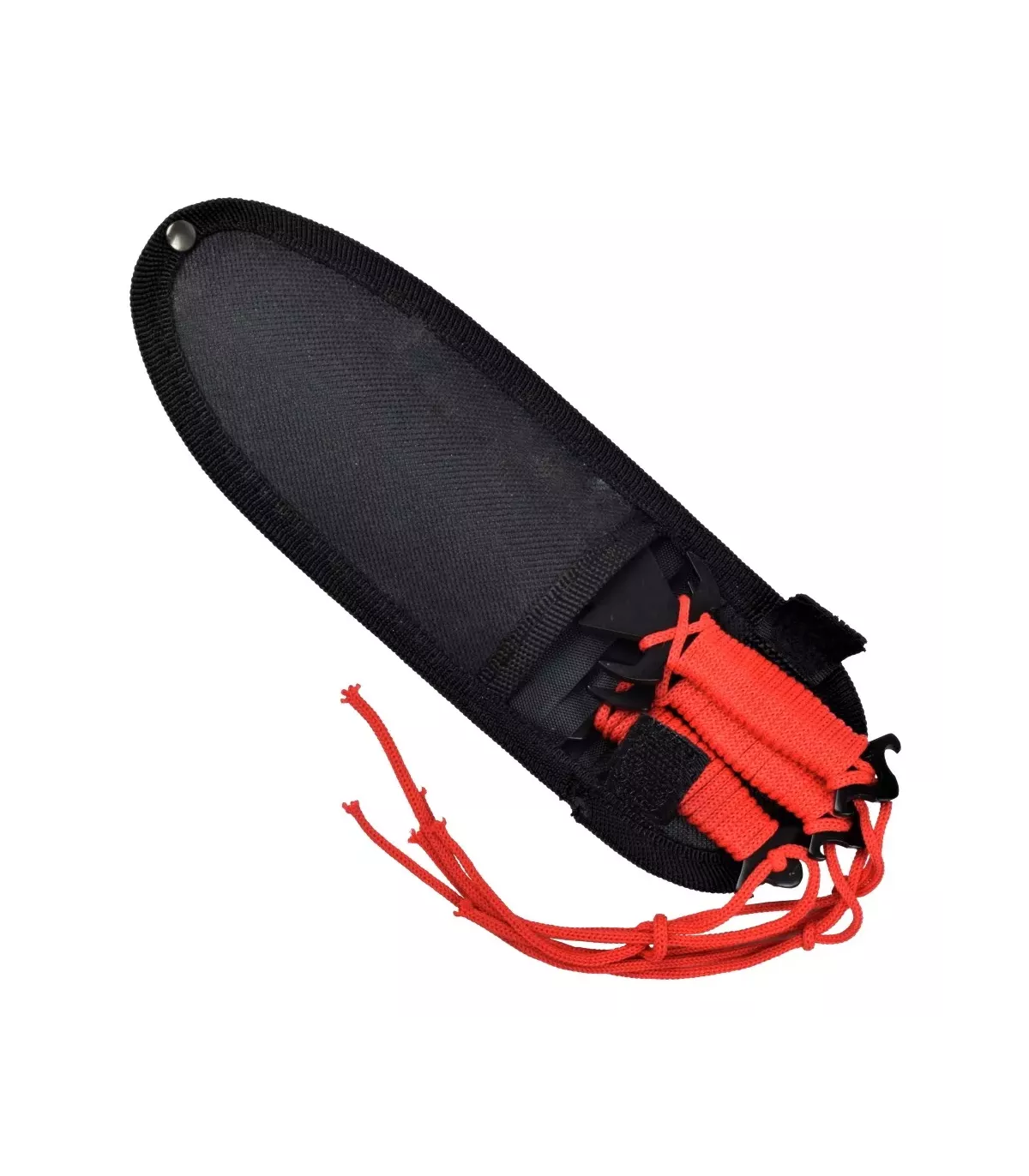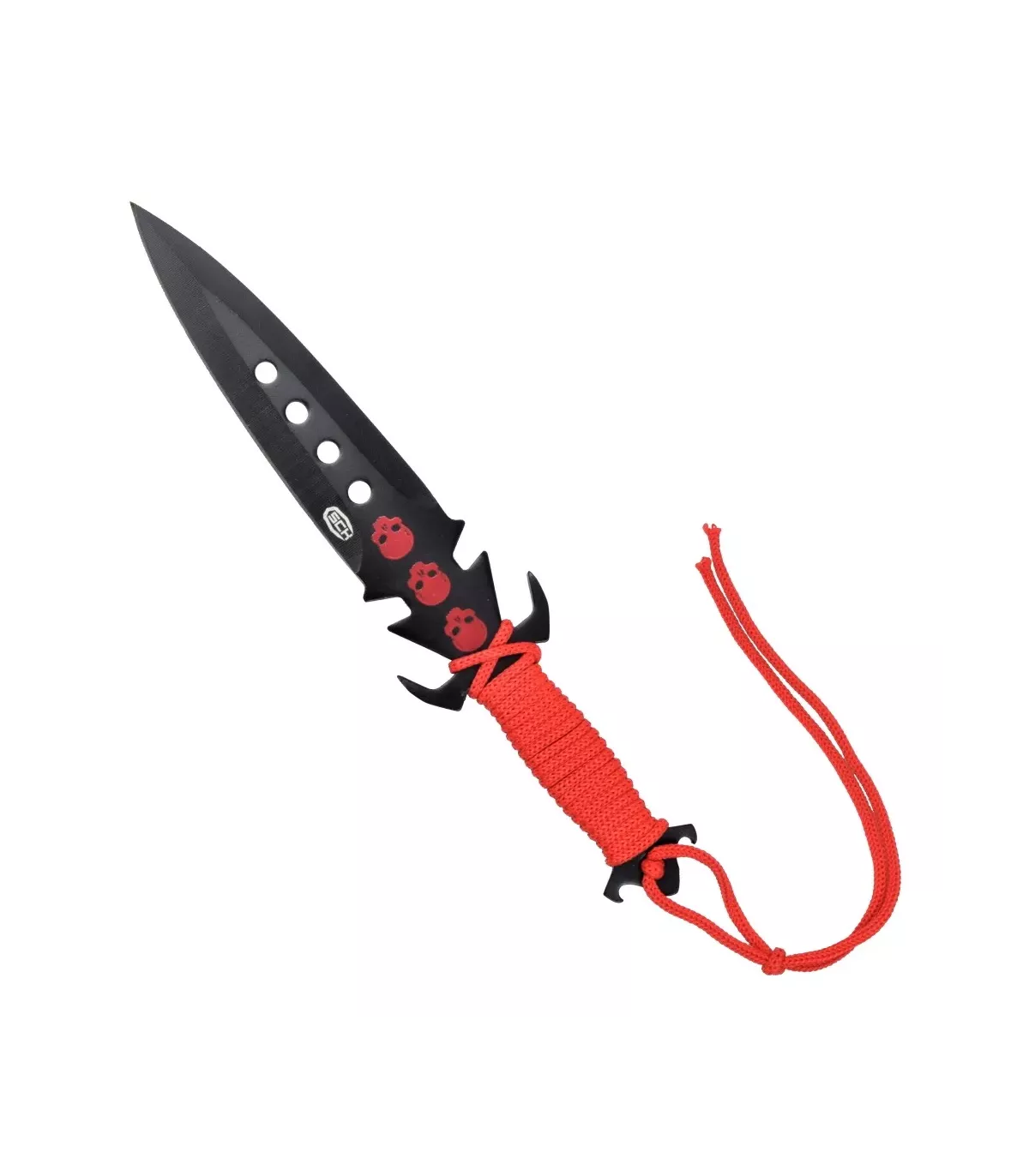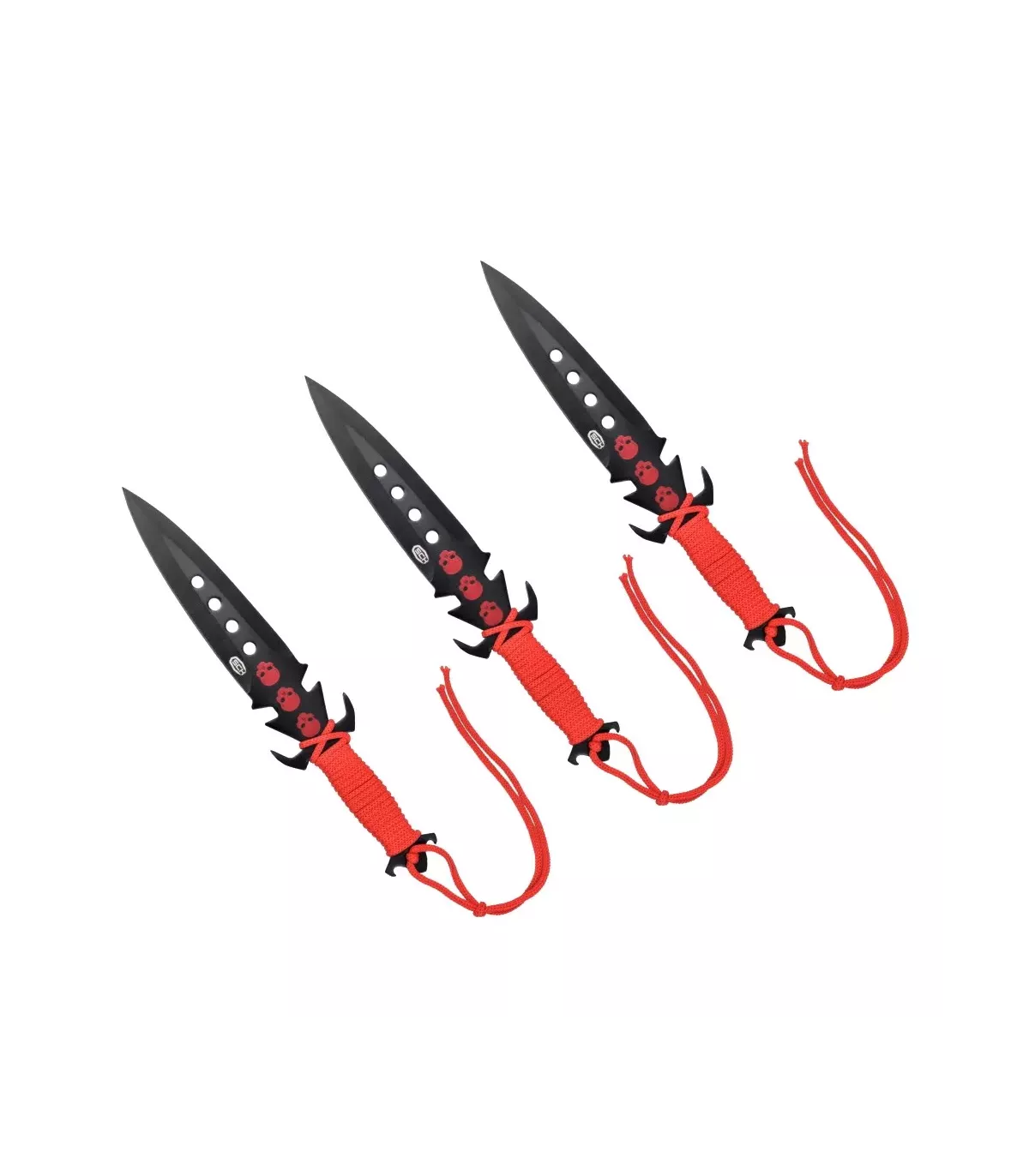 Leve seu estilo pessoal ao próximo nível com os lançadores de fantasia Caveiras. Este conjunto de 3 lançadores apresenta um design único e chamativo, com desenhos de 3 caveiras vermelhas na lâmina e uma empunhadura envolta em cordão vermelho. Fabricados com construção de aço inoxidável de alta qualidade, esses lançadores possuem acabamento preto na lâmina para maior durabilidade e estilo. Com um comprimento total de 190mm e peso de 54g por lançador, são fáceis de manusear e vêm com uma capa de nylon com presilha para cinto para transporte seguro e conveniente.
