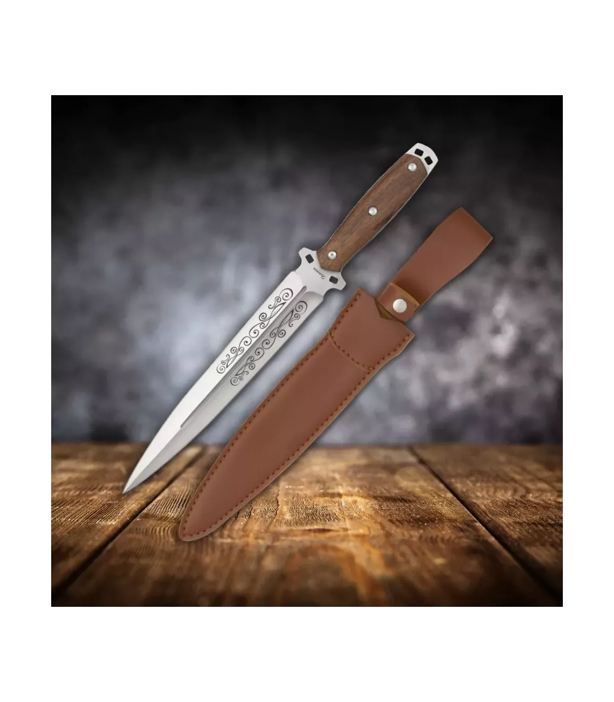 Com um peso leve de 286 gramas e um comprimento total de 39 cm, esta faca é fácil de transportar e manusear durante suas atividades ao ar livre. Além disso, inclui uma bainha de couro marrom que assegura sua proteção e facilita seu transporte de forma segura.