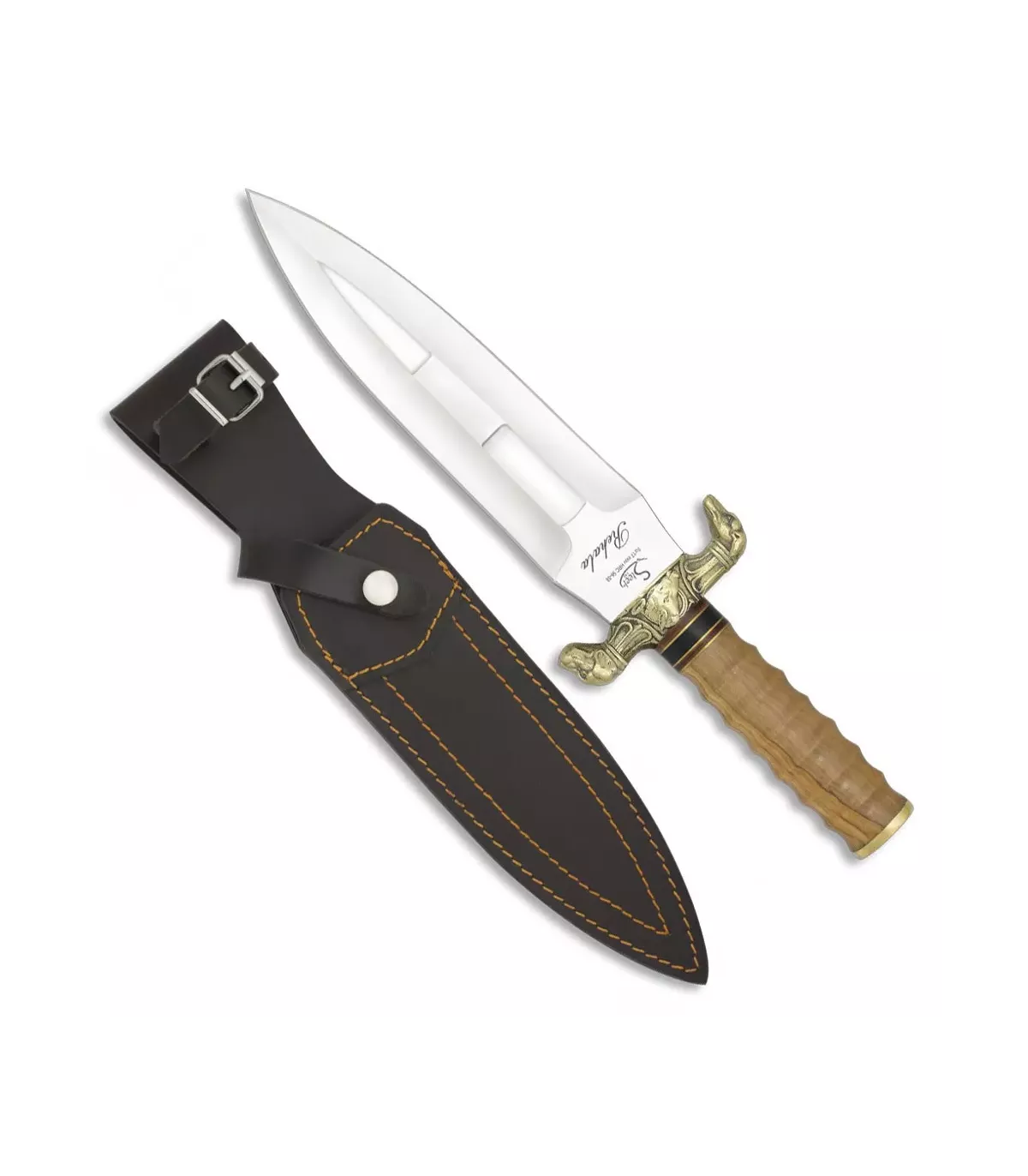 Atreva-se a ser o protagonista de cada finalização com a faca de caça de finalização modelo Rehala. Projetada para os caçadores mais exigentes, esta faca oferece um desempenho excepcional e uma estética incomparável. Seu empunhadura em madeira de oliveira, com separadores de couro, combina elegância e funcionalidade, proporcionando uma pegada segura e confortável em cada movimento.