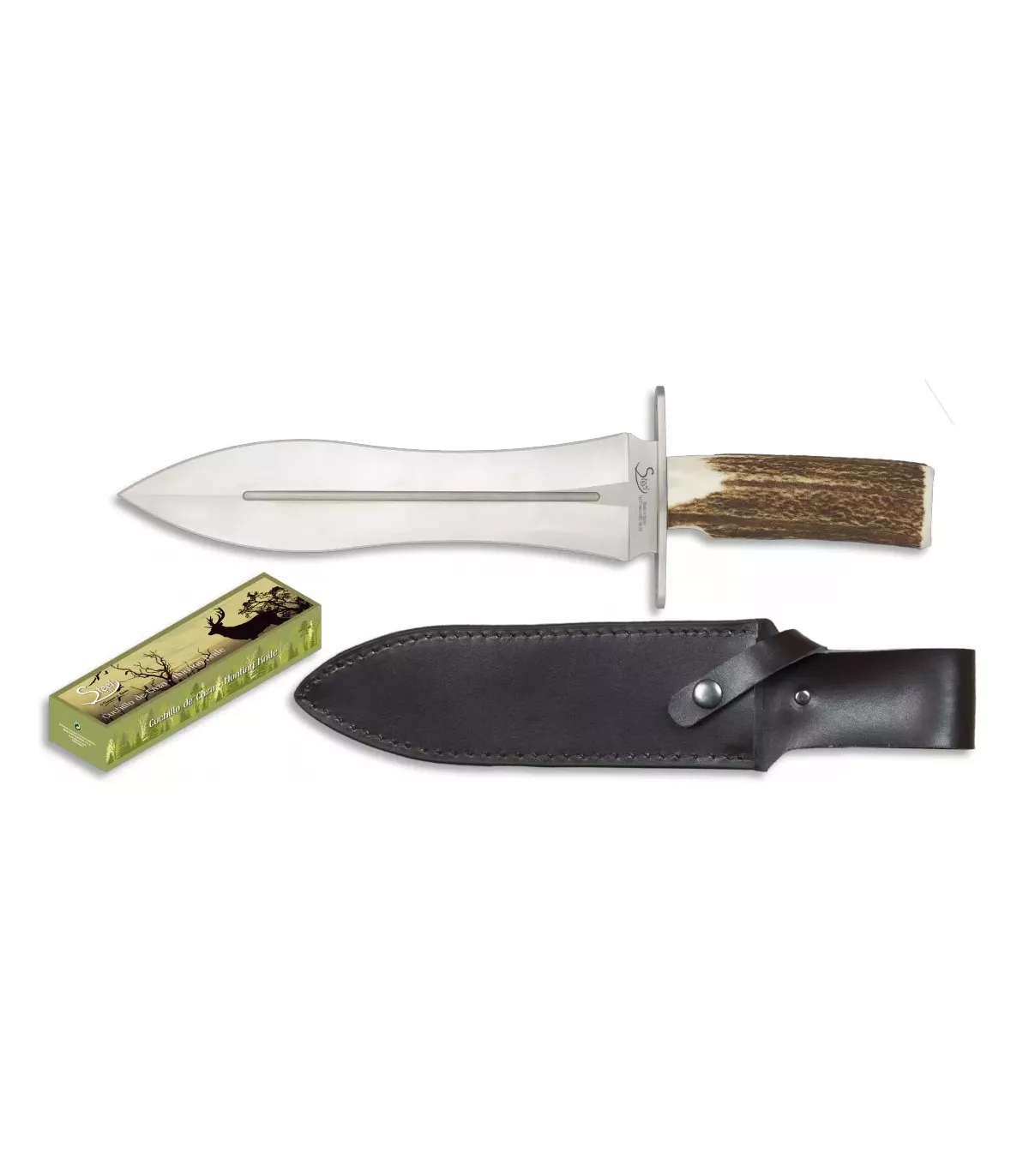 Descubra a faca de acabamento de caça com lâmina fabricada em aço inoxidável e empunhadura de chifre de veado da prestigiada marca espanhola Steel 440. Esta faca é uma ferramenta confiável e eficiente para suas atividades de caça.