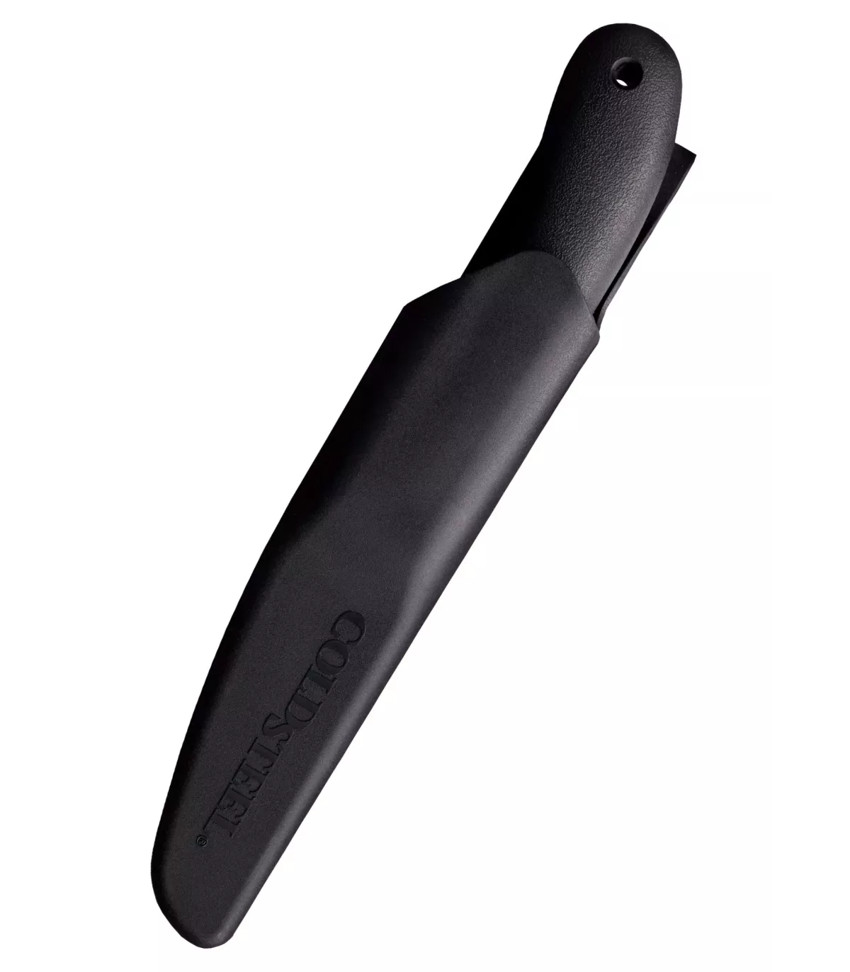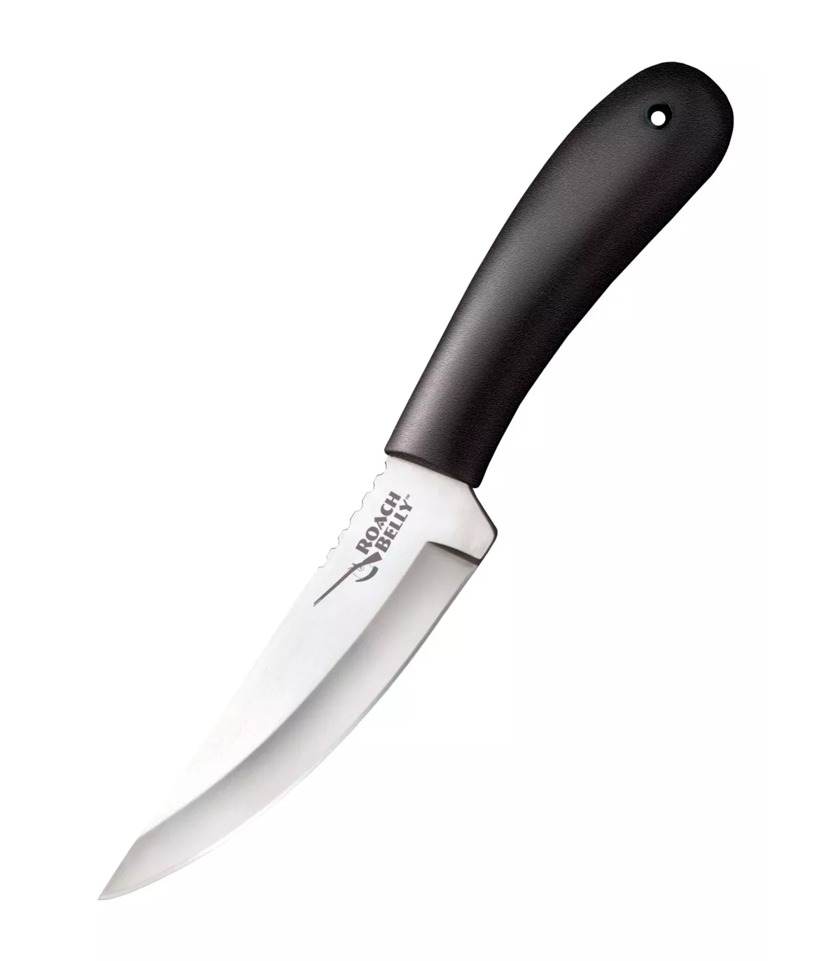 - Empunhadura de polímero injetado: Diferente dos modelos históricos com empunhaduras de madeira, o Roach Belly da Cold Steel® apresenta uma empunhadura de polímero resistente, tornando-a consideravelmente mais resistente às intempéries. Esqueça as preocupações com inchaço, encolhimento, apodrecimento ou rachaduras que afetam as empunhaduras de madeira!