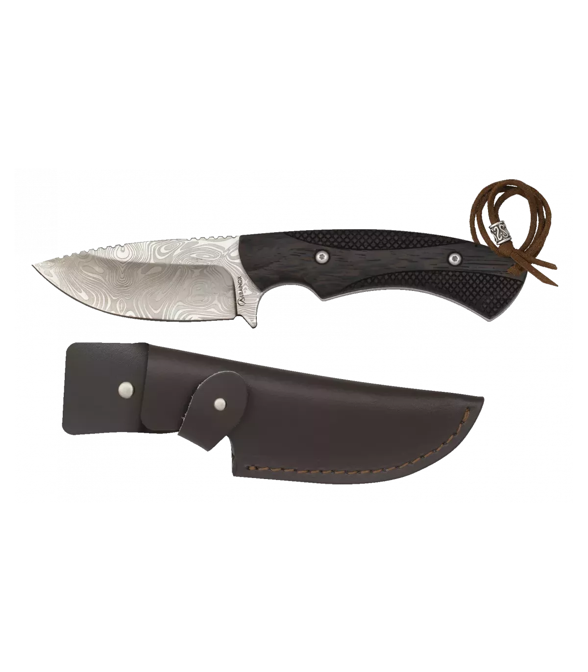 Com acabamento decorativo a laser, esta faca não é apenas funcional, mas também elegante e atraente. Vem com uma bainha de couro CNC e uma corda de presente com um detalhe metálico, tornando-a perfeita para presentear ou levar na próxima viagem de acampamento. Se você procura uma faca de alta qualidade e com estilo, esta faca Albainox é a escolha ideal para você.