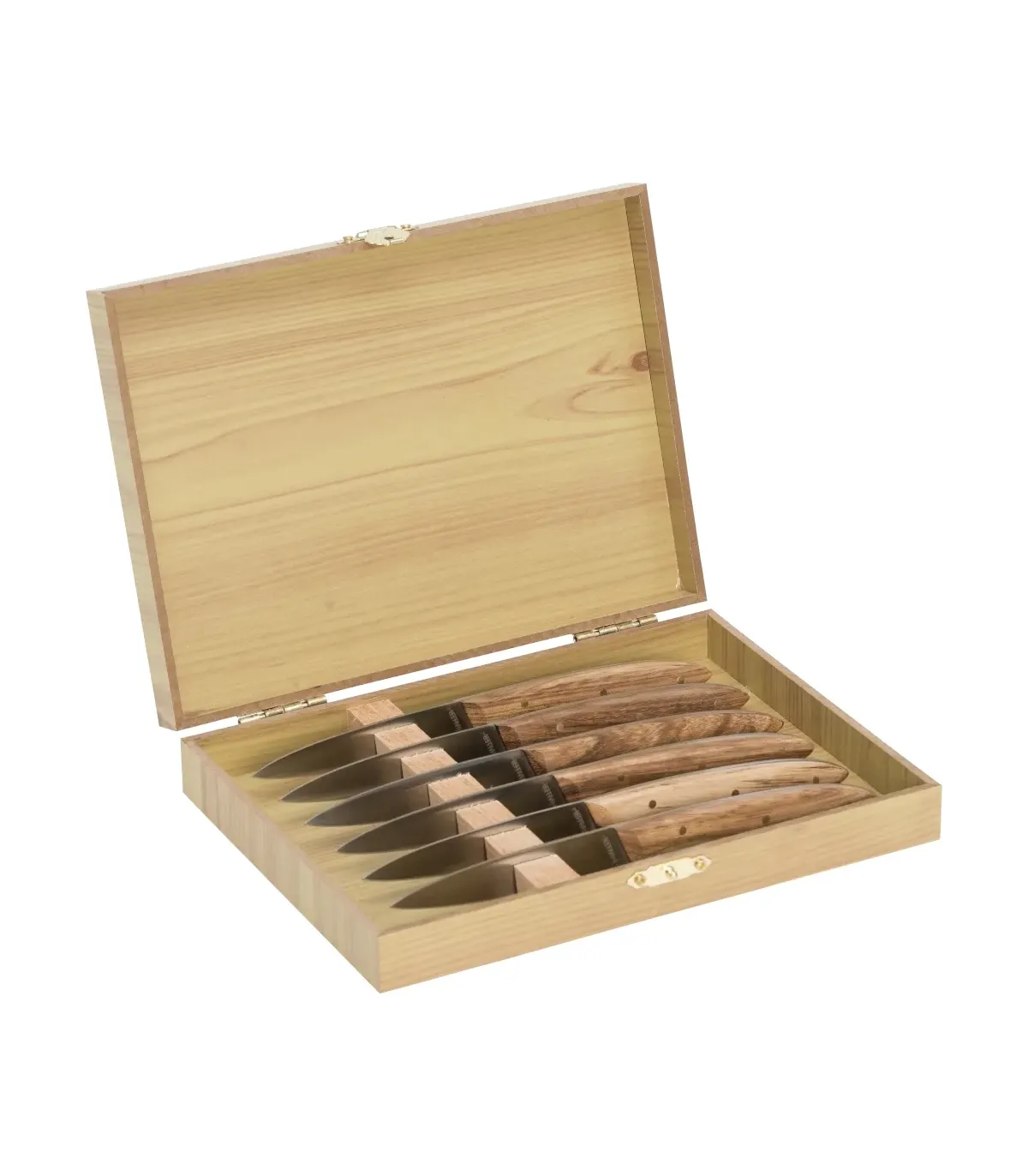 Conjunto de 6 facas com cabos de madeira de zebrano em caixa (17 cm).
