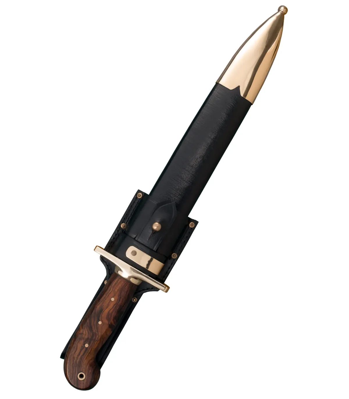 - Inclui bainha de couro de alta qualidade: Completa com uma bainha de couro de alta qualidade costurada à mão, esta faca é perfeita tanto para recreacionistas quanto para colecionadores. Equipado com uma presilha para cinto e acessórios de latão polido, esta bainha garante transporte seguro e elegante para sua faca de fusilero.