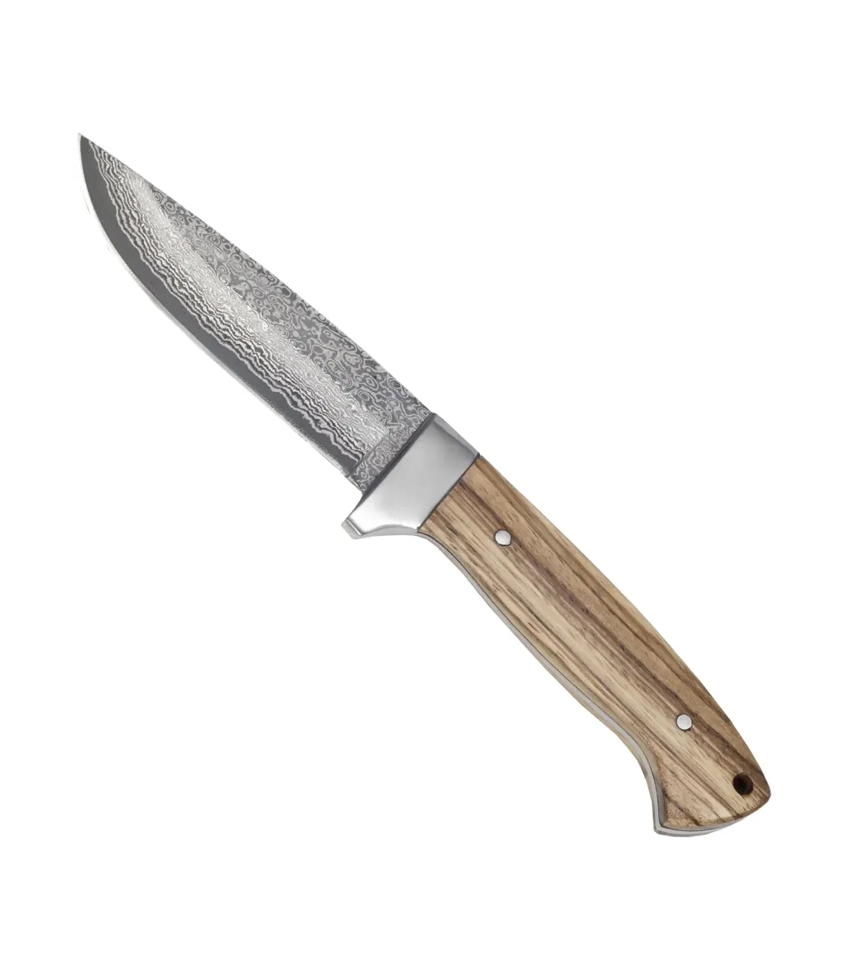 Faca de Damasco Zebrano artesanal, guarda de aço