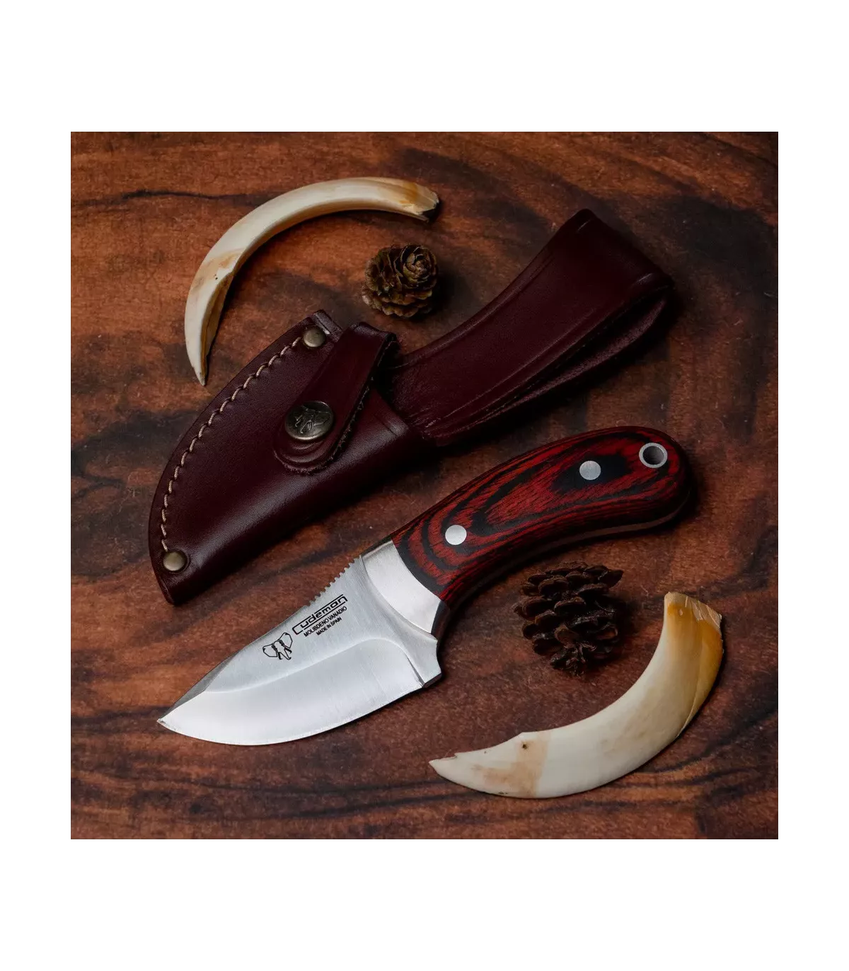 Para transporte seguro e confortável, esta faca de desembarcar inteira inclui uma bainha de couro marrom de alta qualidade. Com um peso total aproximado de 287 gramas (incluindo faca, bainha e caixa), e um prático orifício para cordão de fixação, esta Cudeman está pronta para acompanhá-lo em cada jornada de caça.