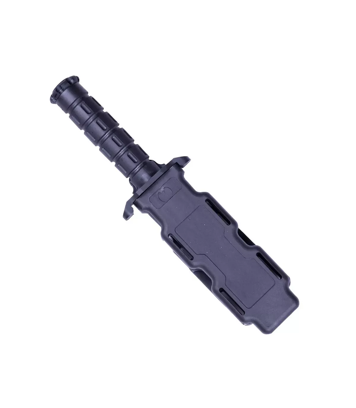Faca modular multiuso com bainha com fecho giratório. Este plástico revolucionário é extremamente resistente e leve. Suporta temperaturas de -45ºC até 65ºC e é impermeável a óleos, água do mar e gasolina. Esta faca 9010 da PHROBIS encaixa-se automaticamente na bainha, mantendo-a segura mesmo na posição invertida. Permite a retirada rápida com uma única mão, com um simples movimento da faca para fora.