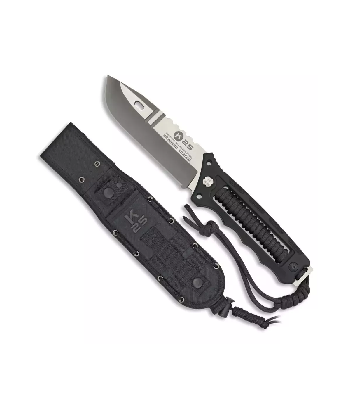 Você está procurando uma faca tática resistente e durável para suas aventuras ao ar livre? A faca tática K25 é a ferramenta perfeita para você. Com uma lâmina de 12 cm feita em aço inoxidável com banho de titânio, esta faca tática é resistente à corrosão e à oxidação, tornando-a ideal para qualquer situação.
