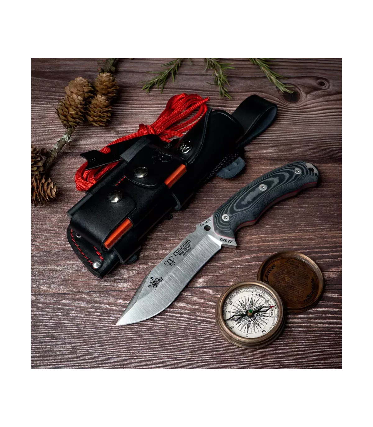 Prepare-se para suas aventuras ao ar livre com a faca de Caça Bushcraft Cudeman preta JJSK1! Esta faca da marca espanhola Cudeman possui uma lâmina de aço Böhler-N-695 de alta qualidade, tornando-a resistente e fácil de afiar. Além disso, sua empunhadura de micarta preta com separador vermelho proporciona uma pegada confortável e segura, mesmo em condições de umidade.