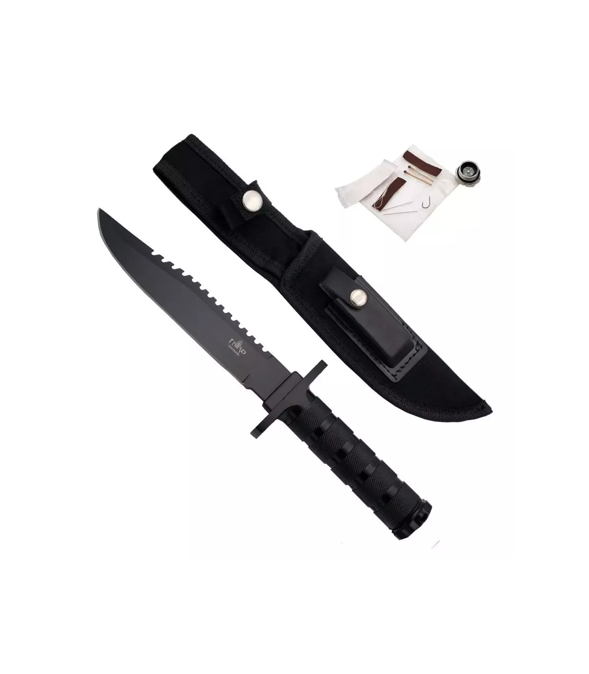 Você está procurando uma faca de sobrevivência de alta qualidade para suas aventuras ao ar livre? O modelo 086 da Third é a ferramenta perfeita para você! Esta faca possui uma lâmina preta de aço inoxidável com 17 cm de comprimento e um cabo de alumínio de 12,8 cm de comprimento para uma pegada segura e confortável.