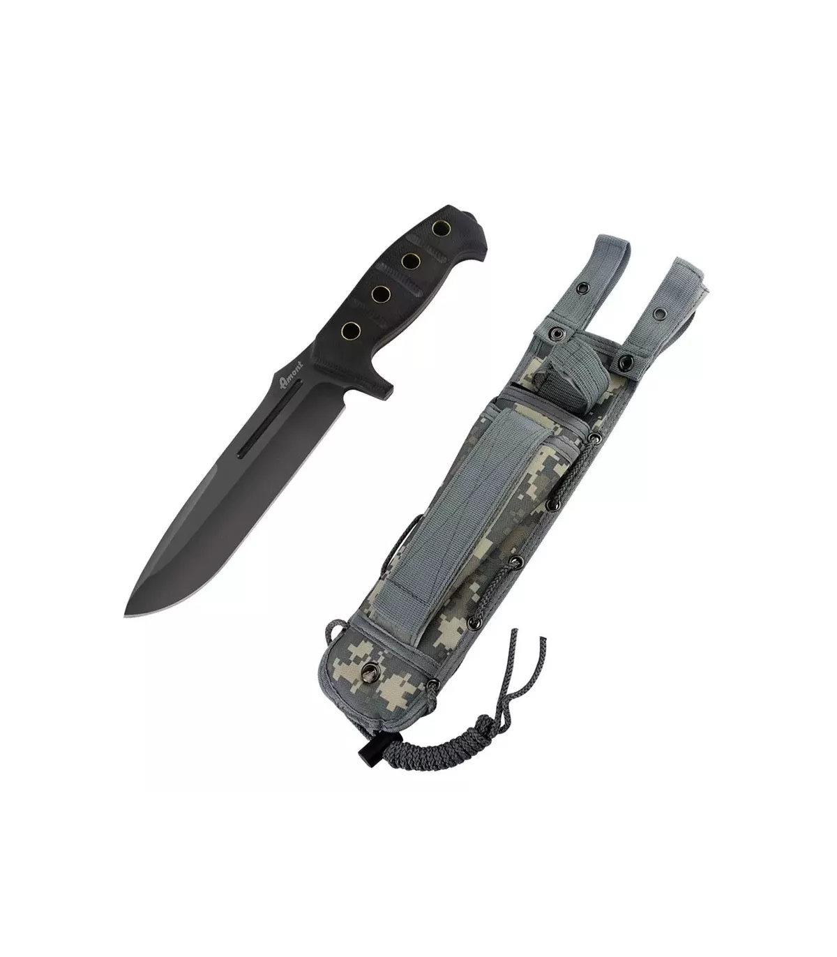A faca tática marca Third também inclui uma bainha militar de nylon para transportá-la de forma segura e fácil. Seja acampando, fazendo trilhas ou em qualquer outra aventura, esta faca tática será sua melhor aliada. Sua lâmina de aço inoxidável a torna resistente e durável, perfeita para qualquer tarefa de corte.