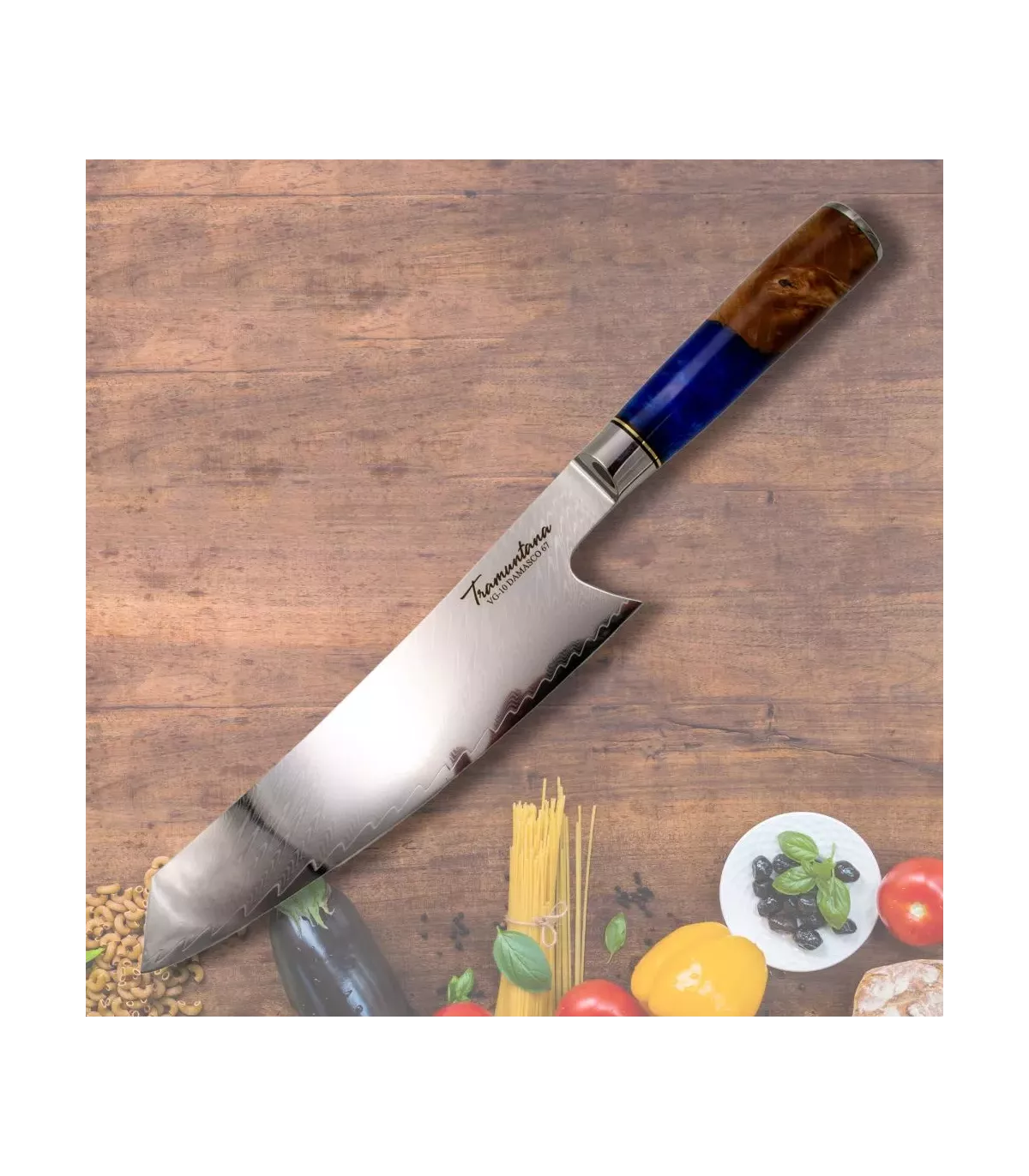 Imagine a elegância de uma faca que não é apenas uma ferramenta, mas também uma obra de arte na sua cozinha. A faca de cozinha Tramuntana, modelo CD01 Kiritsuke, é uma fusão perfeita entre tradição e modernidade que transformará sua experiência culinária em algo extraordinário.