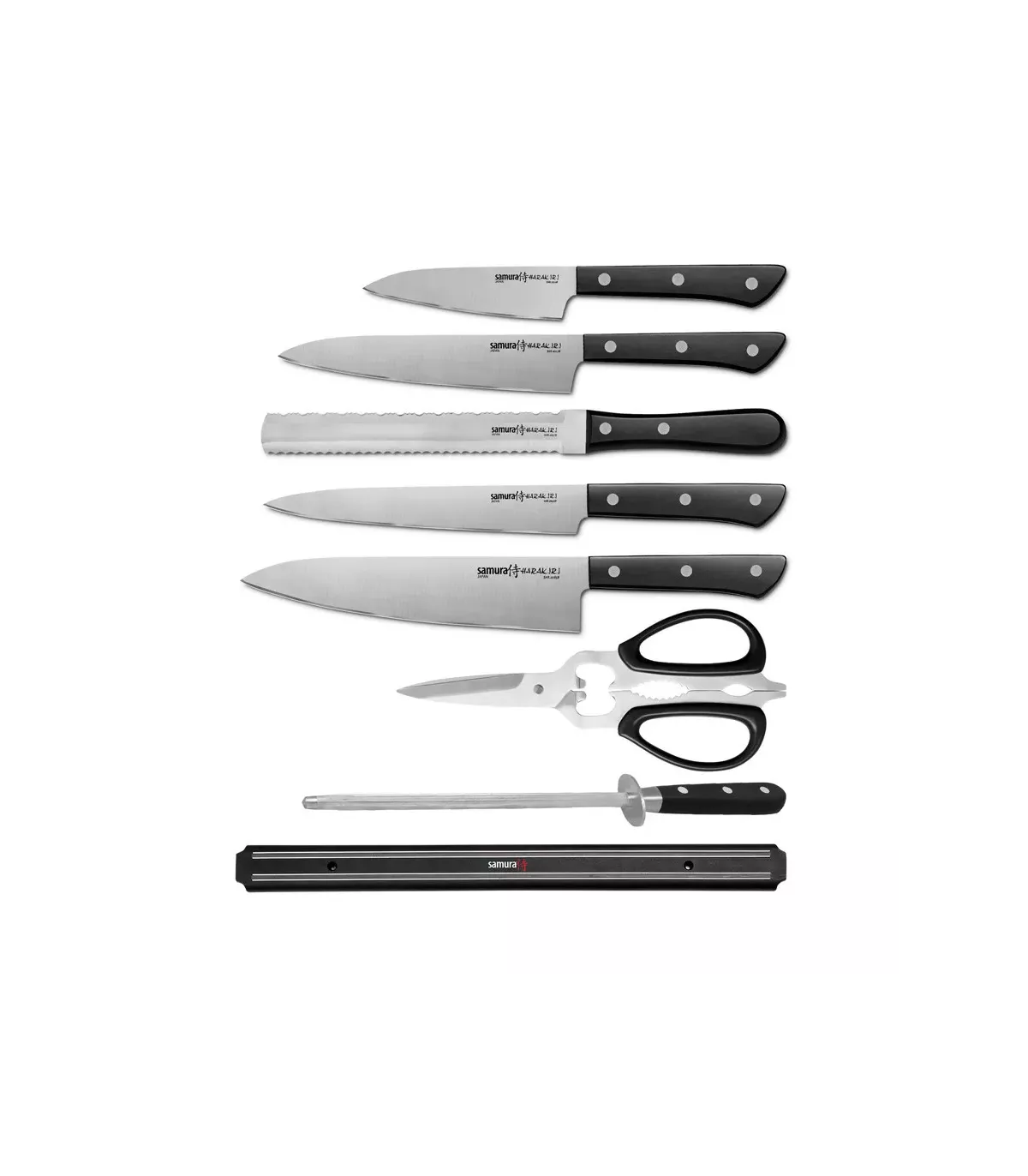 Este conjunto de 8 facas Samura Harakiri Super é a escolha perfeita para quem busca versatilidade na cozinha. Desde a faca de chef até a faca de pão, passando pela faca para desossar e outras, você terá todas as ferramentas necessárias para enfrentar qualquer preparação culinária.