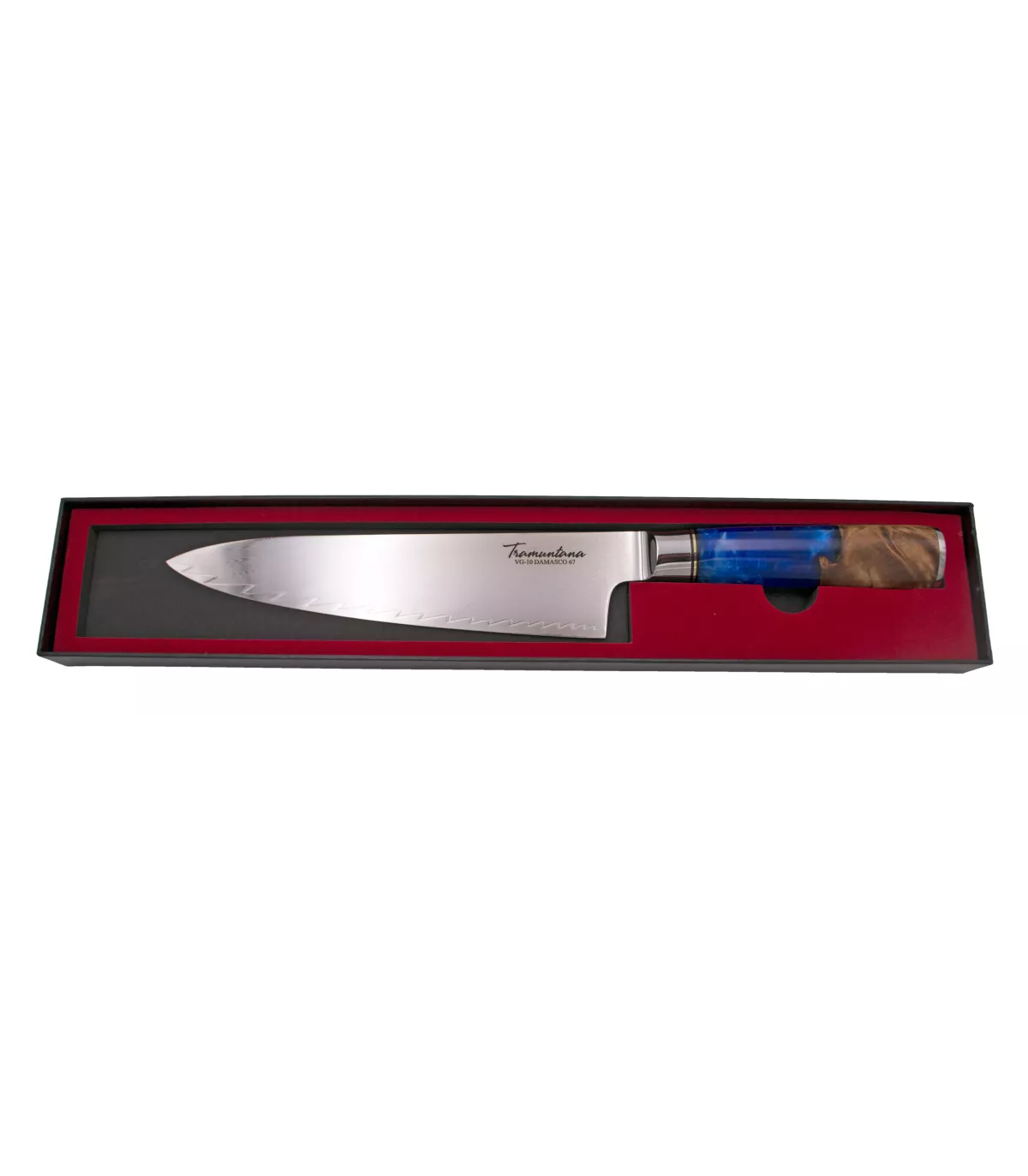 Para completar a experiência, a faca de cozinha Tramuntana modelo Chef é apresentada em uma caixa elegante, perfeita para presente ou para guardar a faca com o cuidado que merece. Esta apresentação reflete a qualidade e o cuidado com que foi criada, tornando-a uma peça digna de exibir em qualquer cozinha.