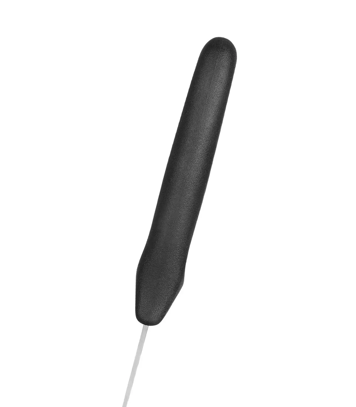 A empunhadura de plástico antideslizante da faca é outra característica de destaque. Seu design garante uma pegada segura e confortável, além de ser fácil de limpar, pois não acumula resíduos durante o uso.