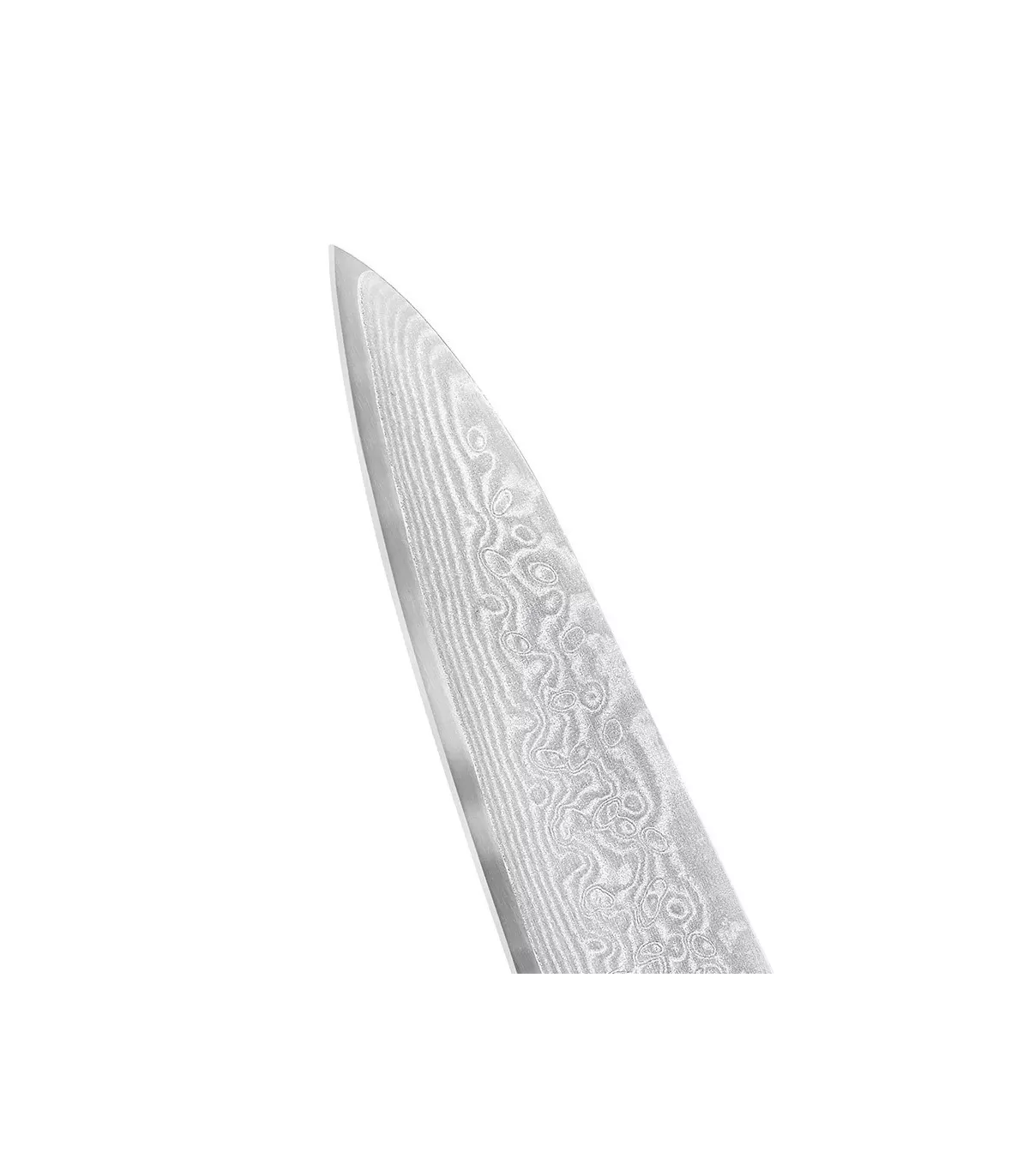 A faca de cozinha Samura Damascus 67 é altamente valorizada pelo seu desempenho de corte preciso e pela capacidade de manter a afiação por períodos prolongados. Seu design ergonômico e equilibrado garante um manuseio confortável e seguro, permitindo realizar suas tarefas culinárias com precisão e confiança.