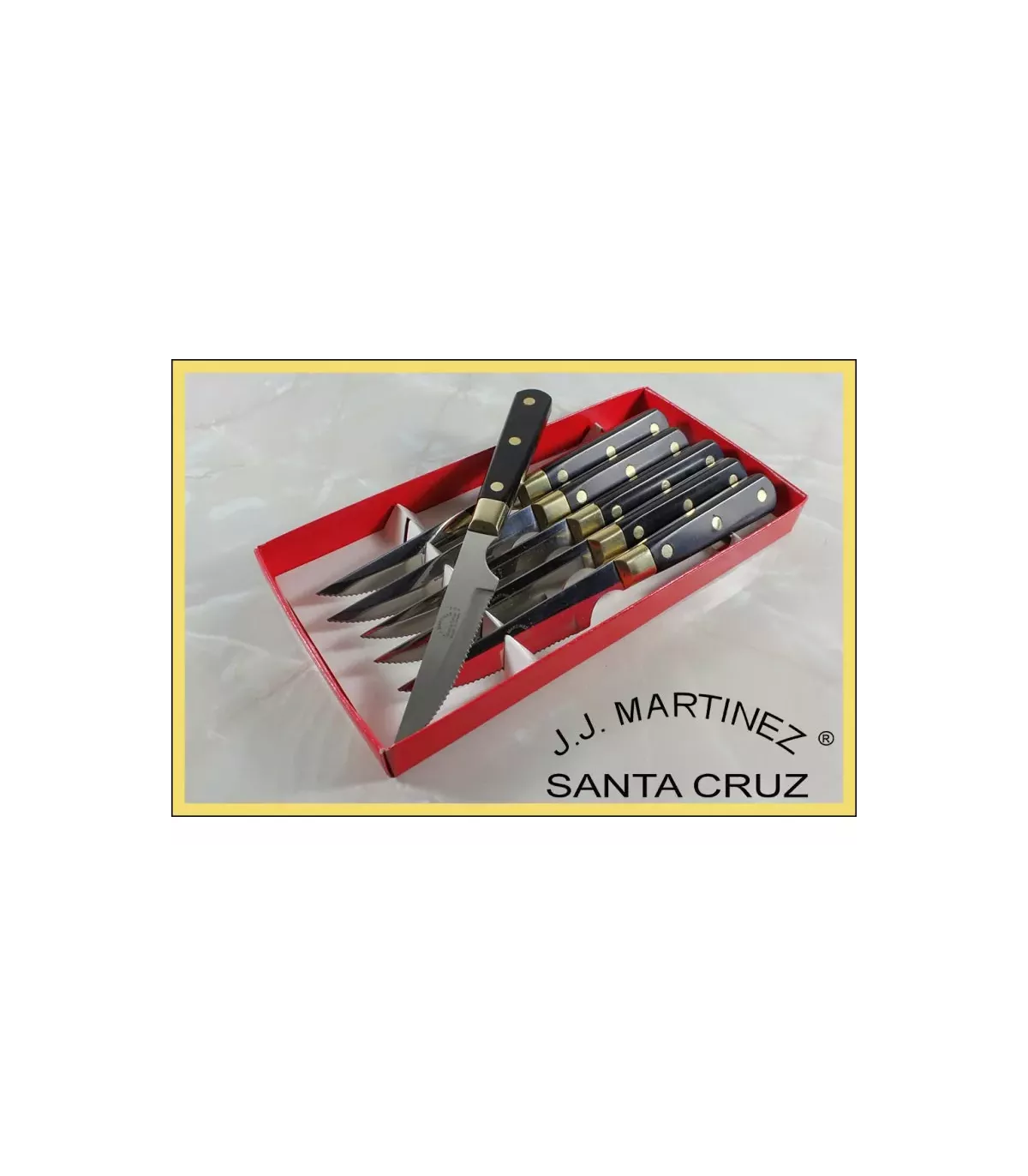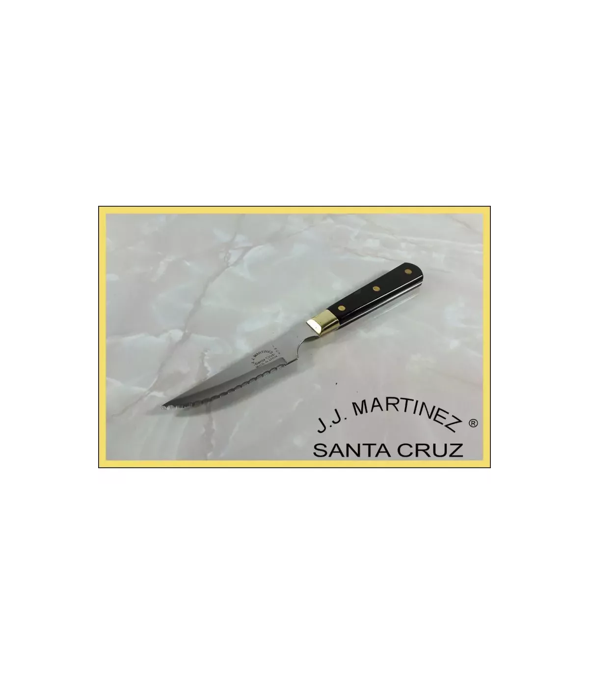 A lâmina de aço inox garante uma resistência excepcional e um corte preciso em cada uso. Seu fio afiado permitirá cortar suas costeletas com facilidade e precisão. A virola em latão adiciona um toque de elegância e proporciona estabilidade à estrutura da faca. Além disso, a empunhadura de Phenolkraff preto oferece uma pegada ergonômica e confortável, permitindo ter um controle total durante o processo de corte.