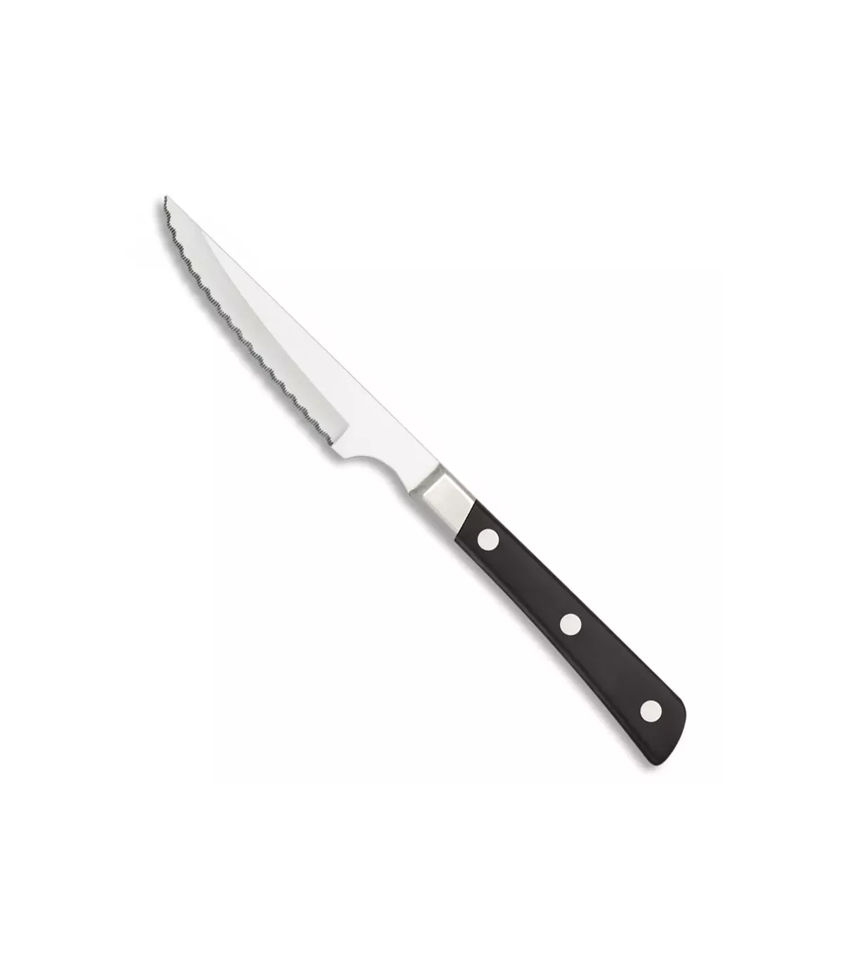 Descubra a faca de chuletero da renomada marca Albainox. Esta faca apresenta uma lâmina dentada fabricada em aço inoxidável com microfilo, que mede 11,4 cm. A empunhadura é feita de POM e possui uma virola de aço inoxidável. Prepare-se para desfrutar de um corte eficiente e duradouro em seus assados e carnes favoritas.