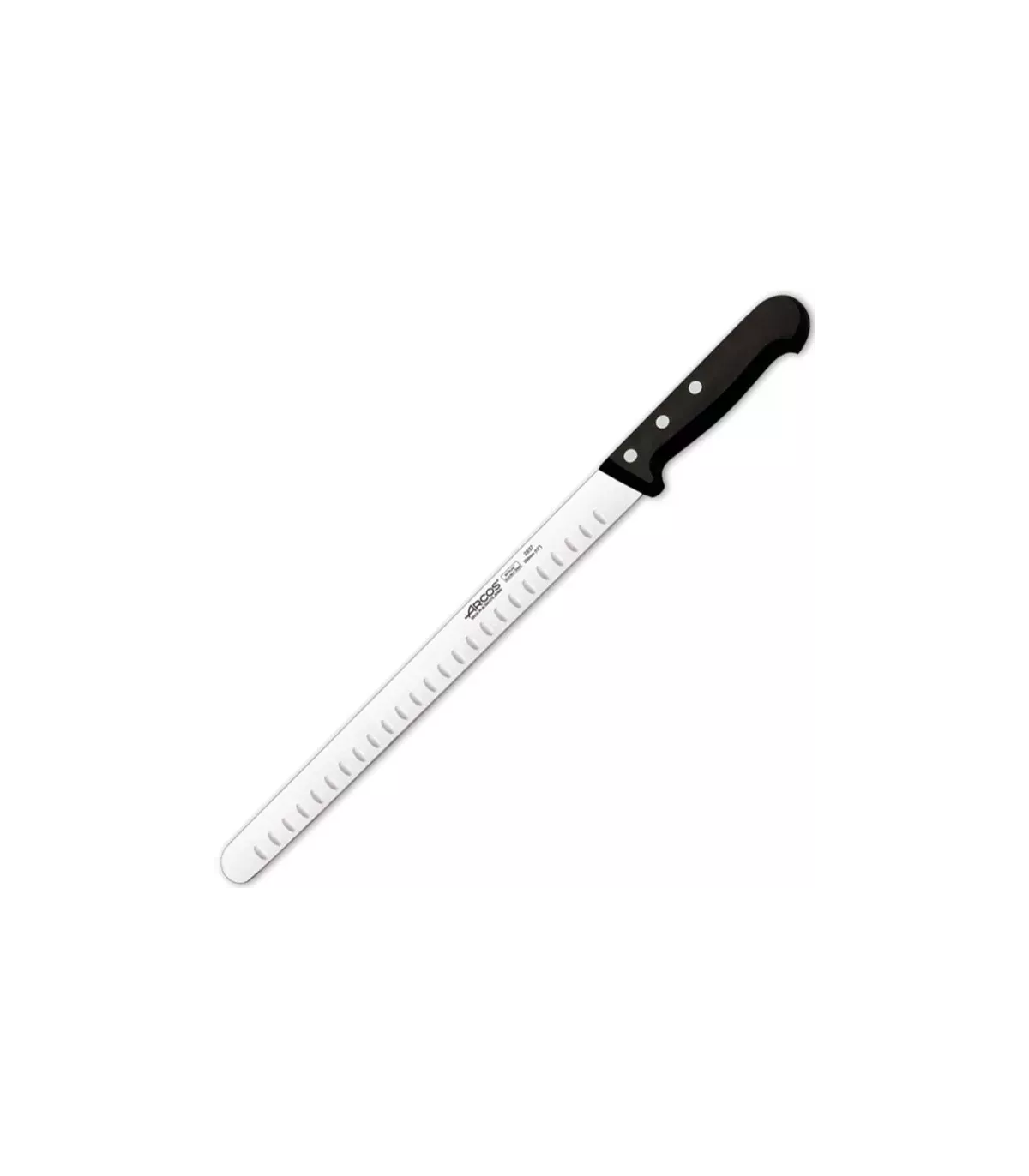 Descubra a Faca para Salmão da série Universal da Arcos! Com sua lâmina de Aço Inoxidável flexível de 300 mm e cabo de Polioximetileno (POM), esta faca oferece uma experiência culinária excepcional. Graças à durabilidade NITRUM® do aço inoxidável, você poderá desfrutar de seu desempenho de corte superior por muito tempo.