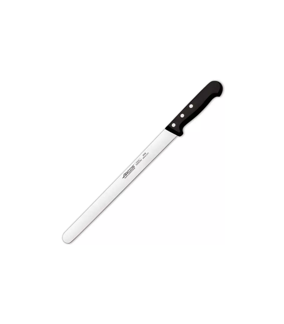 A faca para presunto da série Universal da Arcos é a ferramenta indispensável para suas tarefas diárias na cozinha. Fabricada em Albacete, Espanha, esta faca possui uma lâmina flexível de 300 mm em aço inoxidável de alta qualidade, com a durabilidade e desempenho proporcionados pelo exclusivo tratamento NITRUM®.