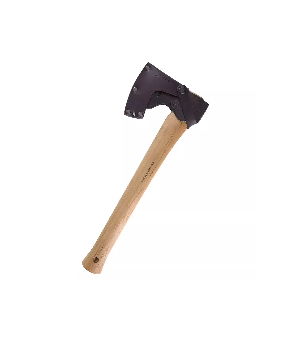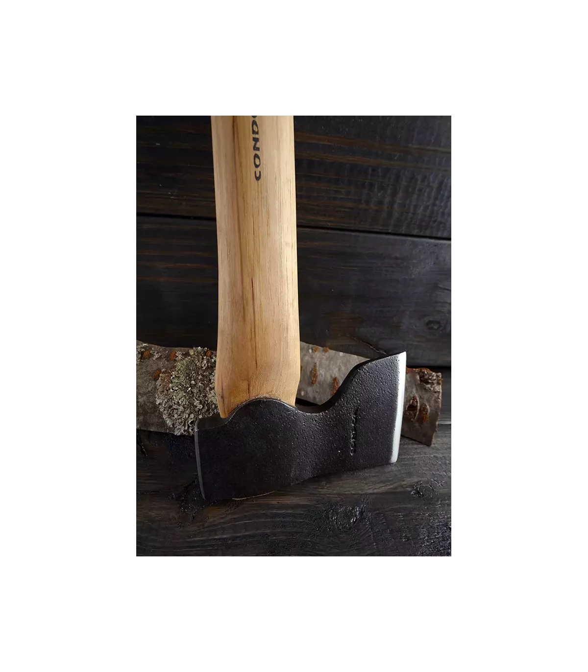 Este machado possui uma cabeça forjada em aço de alto carbono 1060 com acabamento Condor Classic, que confere uma aparência rústica e autêntica. O cabo de madeira de nogueira americana, com 46 cm de comprimento, é confortável de segurar e proporciona uma excelente sensação na mão. Além disso, a bainha de couro incluída não só protege a lâmina, mas também permite transportar o machado de forma segura e conveniente.