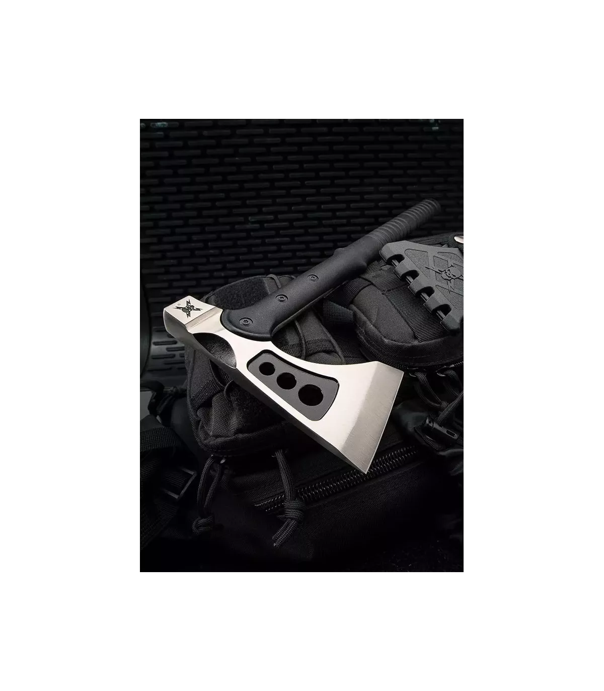 Você é um amante de sobrevivência e camping? Então, deve conhecer o Machado de Lenhador M48 da United Cutlery. Esta ferramenta multifuncional é perfeita para qualquer atividade ao ar livre, pois possui uma lâmina e um martelo na mesma ferramenta. A cabeça do machado é feita de aço inoxidável fundido 3Cr13 com acabamento acetinado e revestida de óxido preto, tornando-a resistente e durável. Além disso, apresenta orifícios passantes para reduzir o peso e facilitar seu transporte.