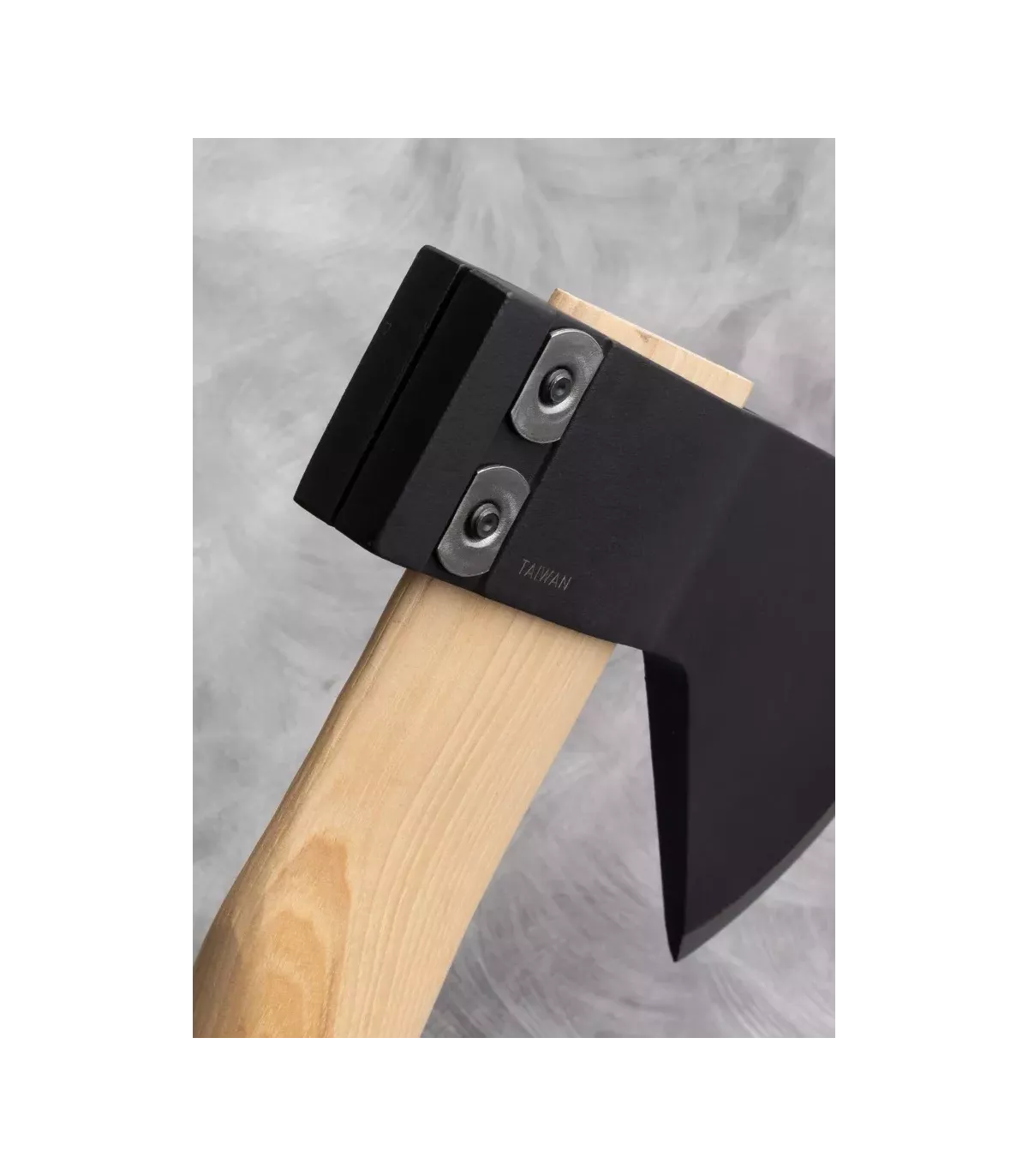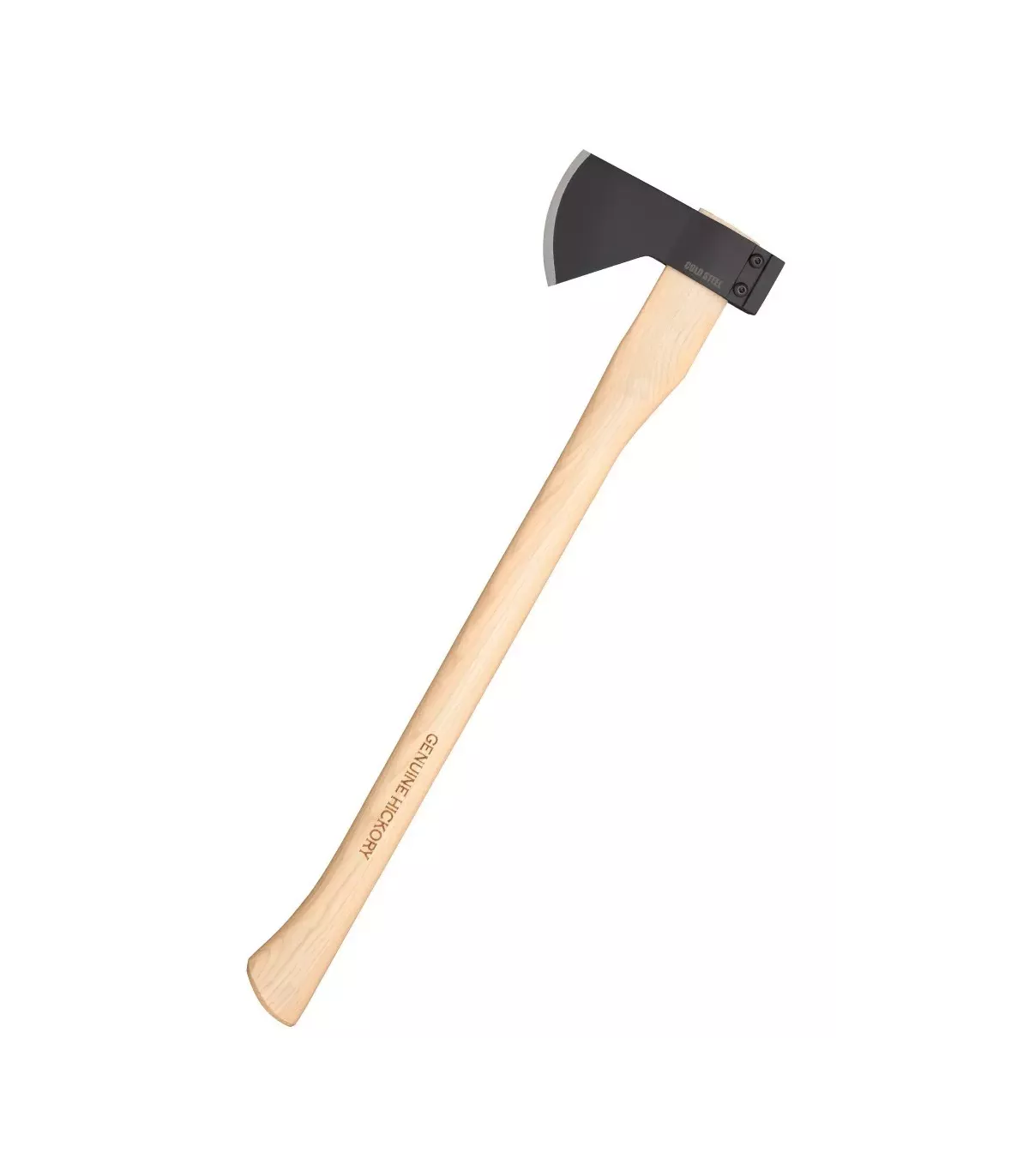Machado de Acampamento Baía de Hudson fabricado pela Cold Steel®. Com um tamanho conveniente para realizar todas as aventuras ao ar livre, é uma ferramenta essencial sem a qual você não desejará ir à floresta. O melhor de tudo é que possui o inovador mecanismo de bloqueio semelhante a uma braçadeira da Cold Steel®. Além disso, é possível trocar uma empunhadura quebrada em menos de dois minutos. Se estiver preso na natureza, pode improvisar uma empunhadura de substituição conveniente para o campo com quase qualquer pedaço de madeira disponível.
