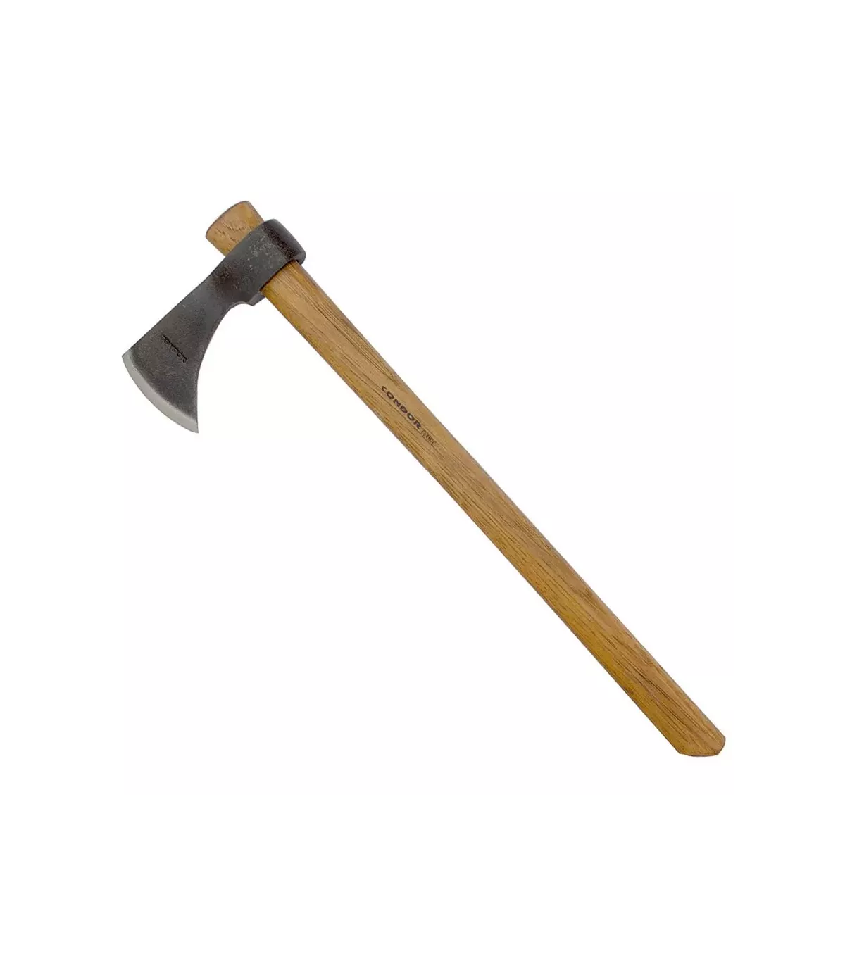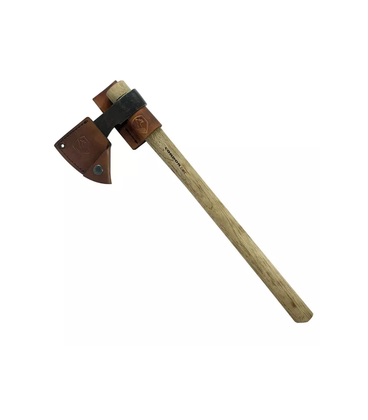 Machado de arremesso indiano da marca Condor fabricado com lâmina de alto teor de aço carbono 1060 e tratada termicamente, temperada, com dureza de 50-55 HRC. A lâmina é artesanalmente trabalhada com acabamento a martelo, conferindo um aspecto clássico e aprimorado. Cabo em madeira americana. Inclui bainha de couro.