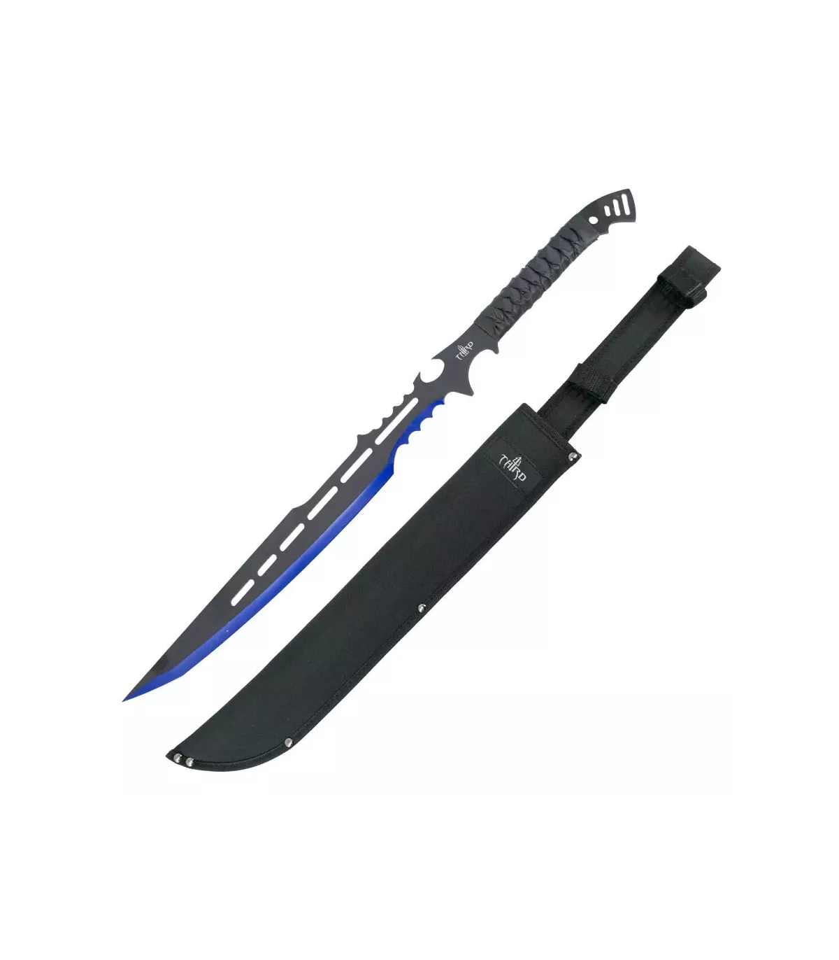 A empunhadura trançada em preto oferece uma pegada confortável e segura, proporcionando controle ótimo durante o uso. Além disso, o facão acompanha uma bainha de nylon resistente, que permite transportá-lo de forma segura e protegê-lo quando não estiver em uso.