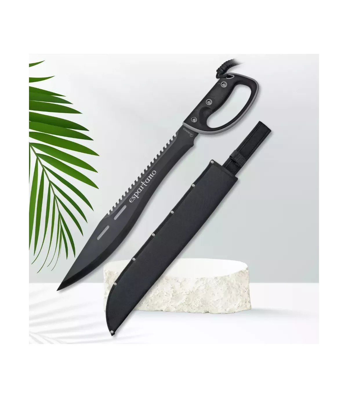 Descubra o facão cortacañas espartano, um instrumento indispensável para suas aventuras ao ar livre. Com uma lâmina de 45 cm e uma bainha de nylon resistente, este facão é perfeito para cortar canas e vegetação em suas excursões ou atividades de camping.