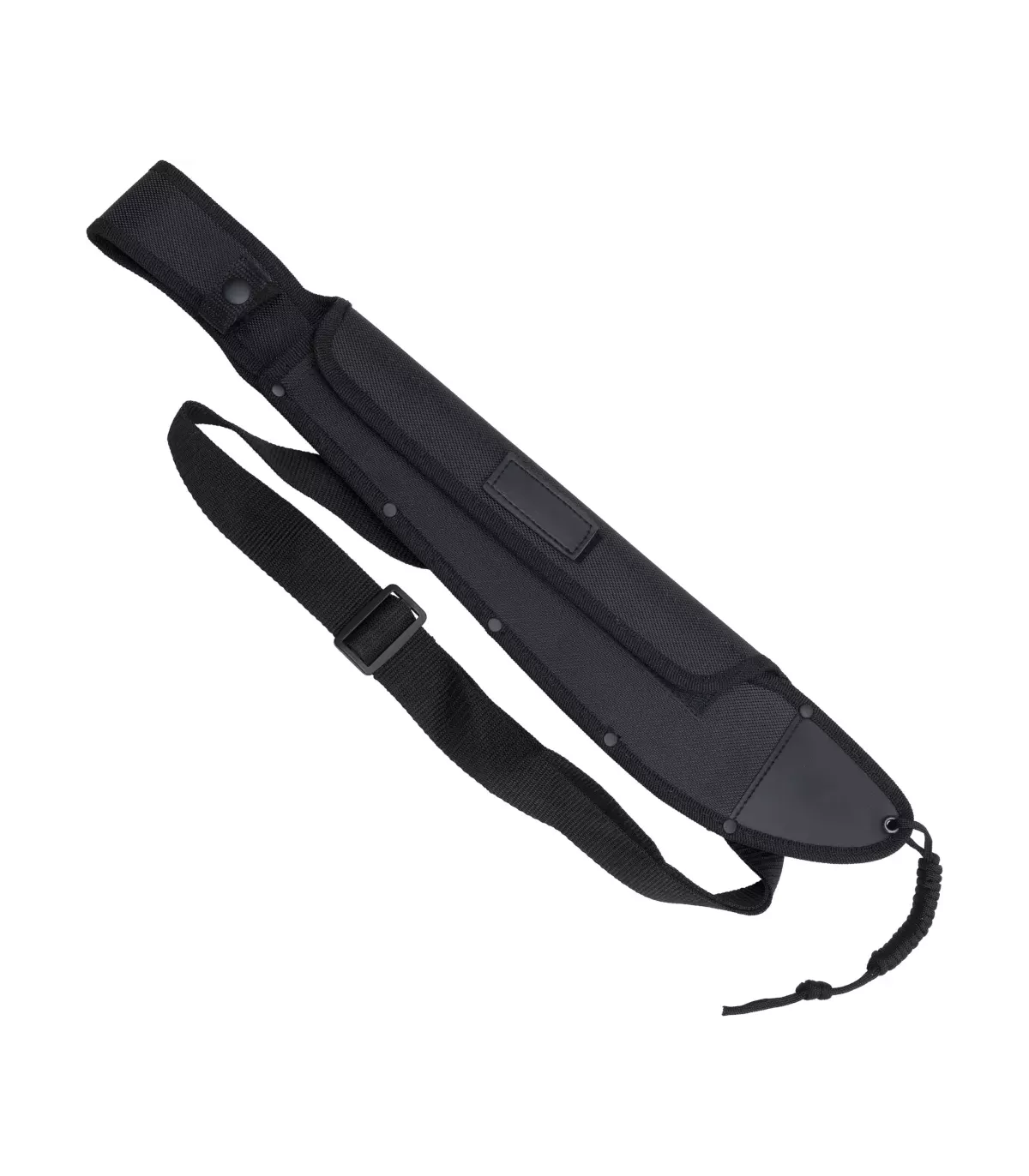 O machete inclui uma bainha de nylon resistente que protege a lâmina quando não está em uso e facilita seu transporte. Com um comprimento total de 530 mm e peso de 535 g, este machete é suficientemente pesado para cortar materiais duros, mas também leve o suficiente para um manuseio confortável por longos períodos.