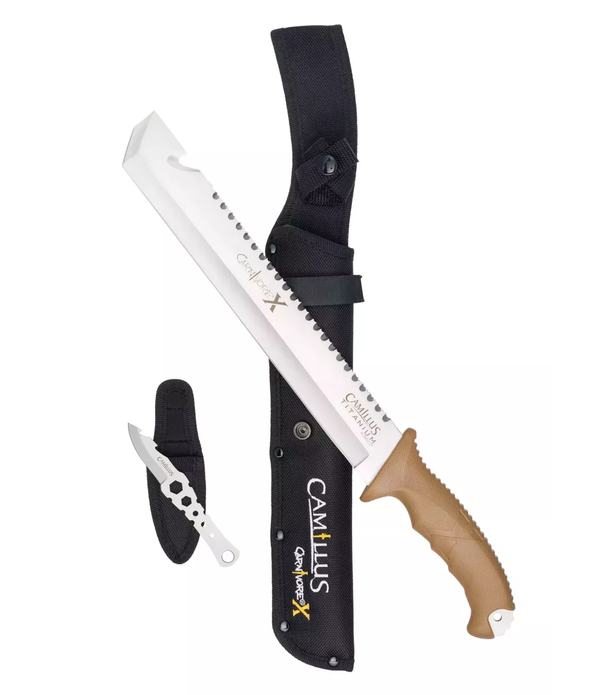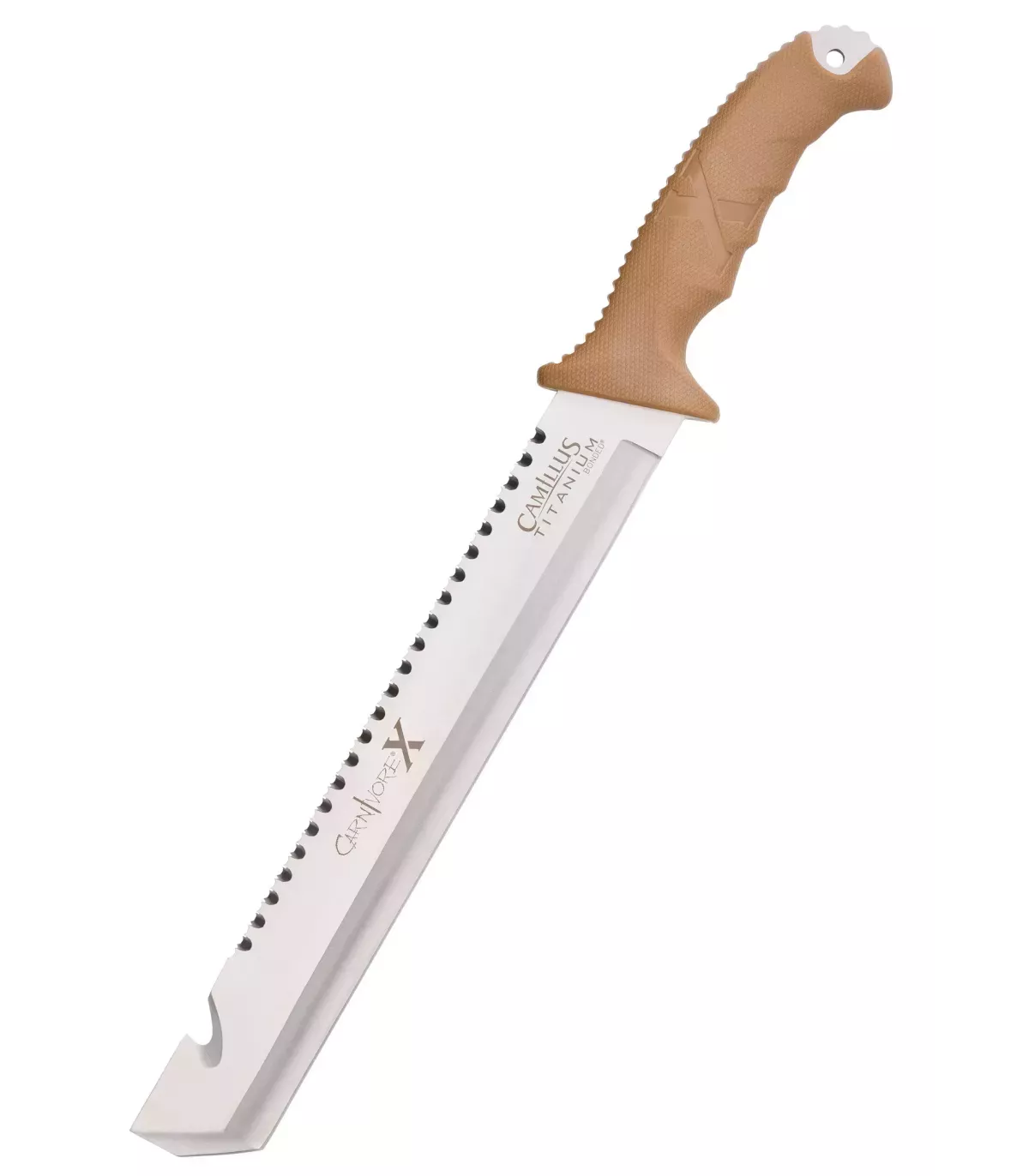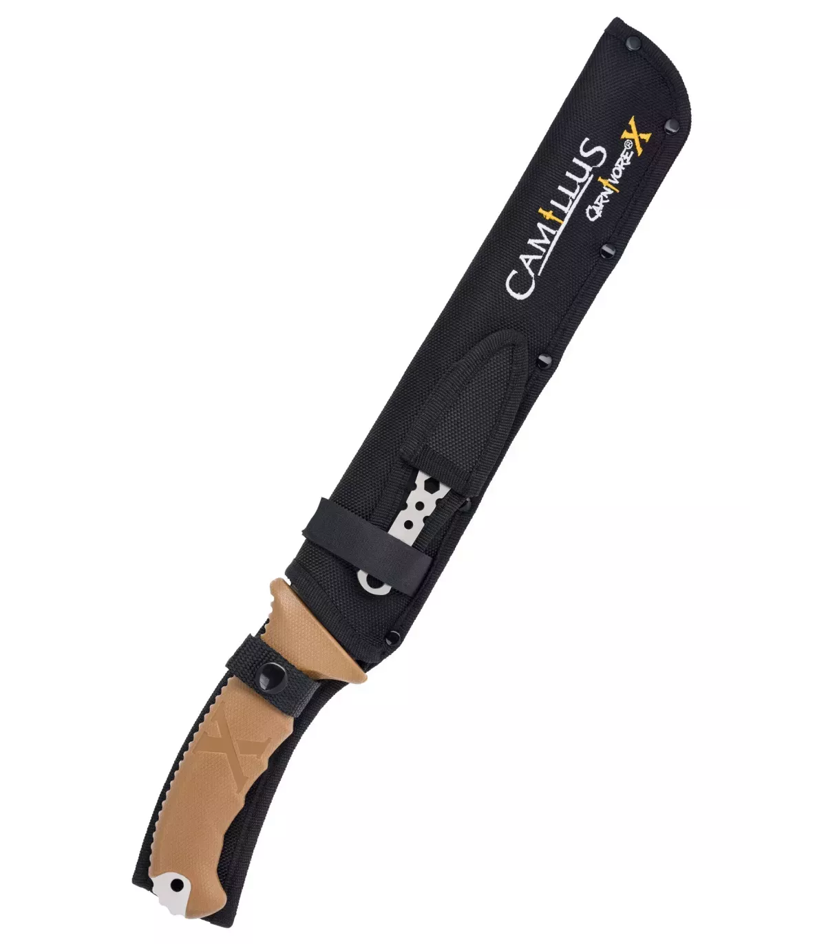 Facão tático cortacaças Camillus modelo CARNIVORE X, com bainha