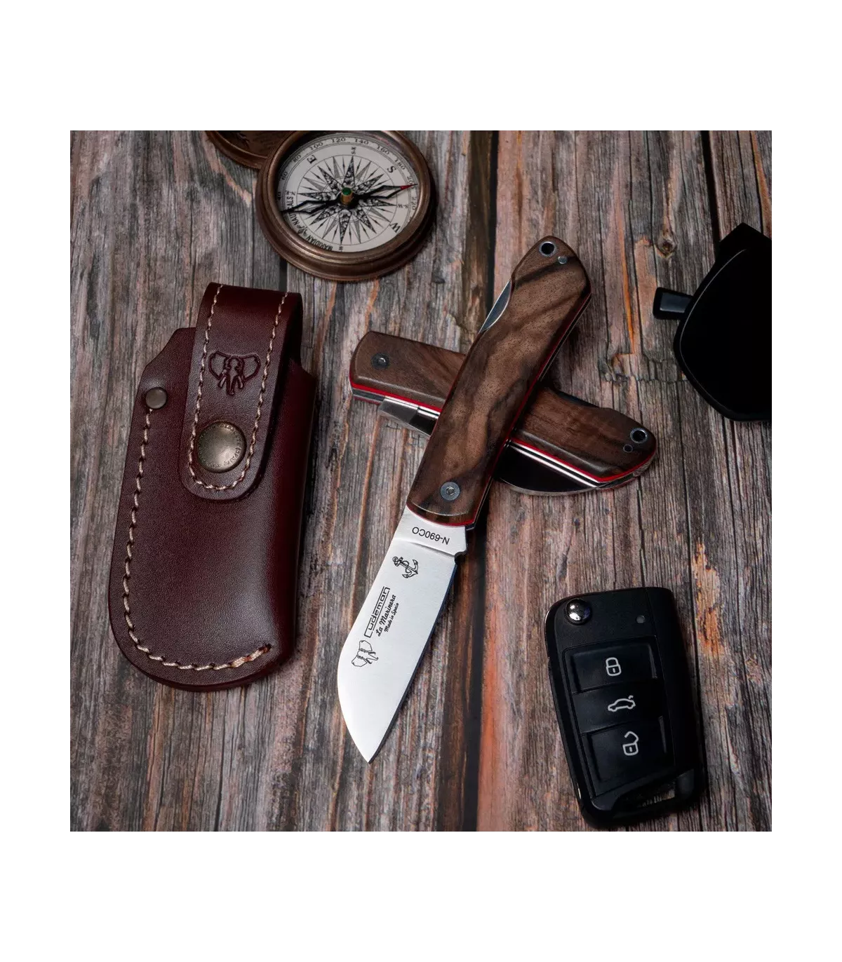 Canivete marinheiro da marca Cudeman feito na Espanha com materiais de alta qualidade. Inclui estojo de couro marrom.